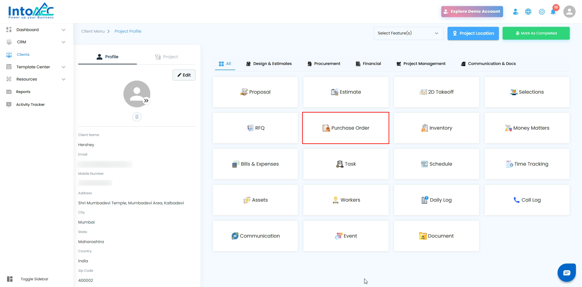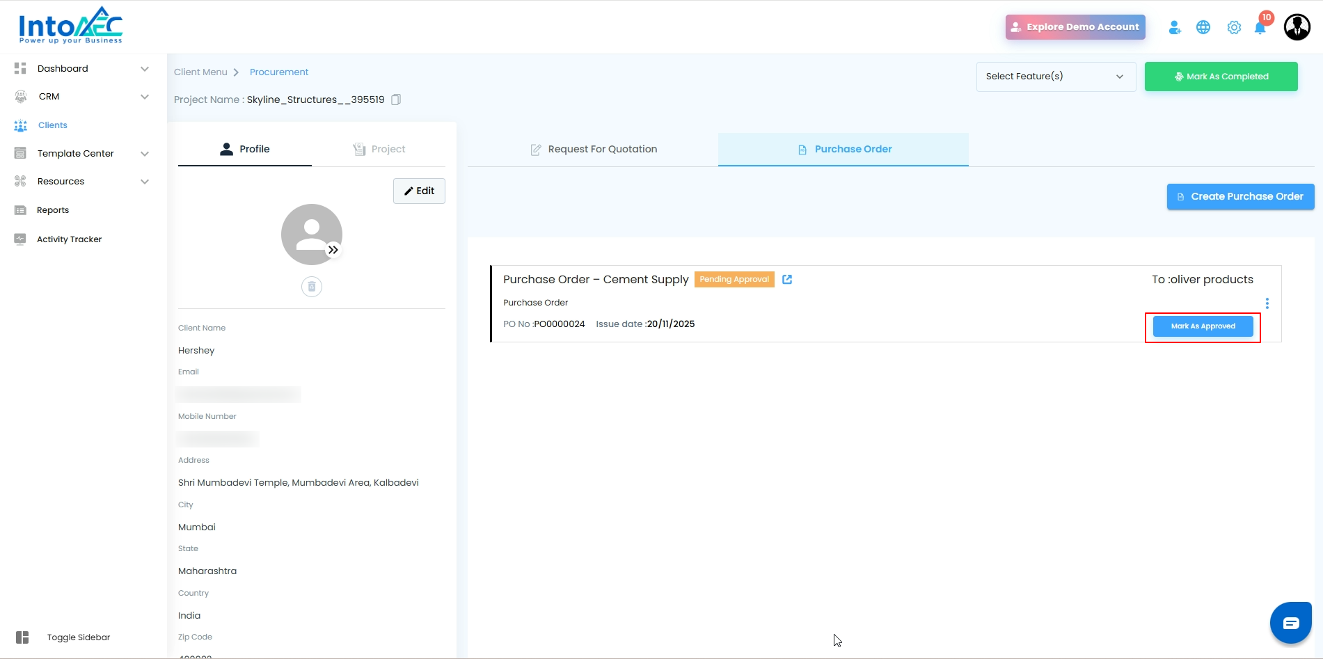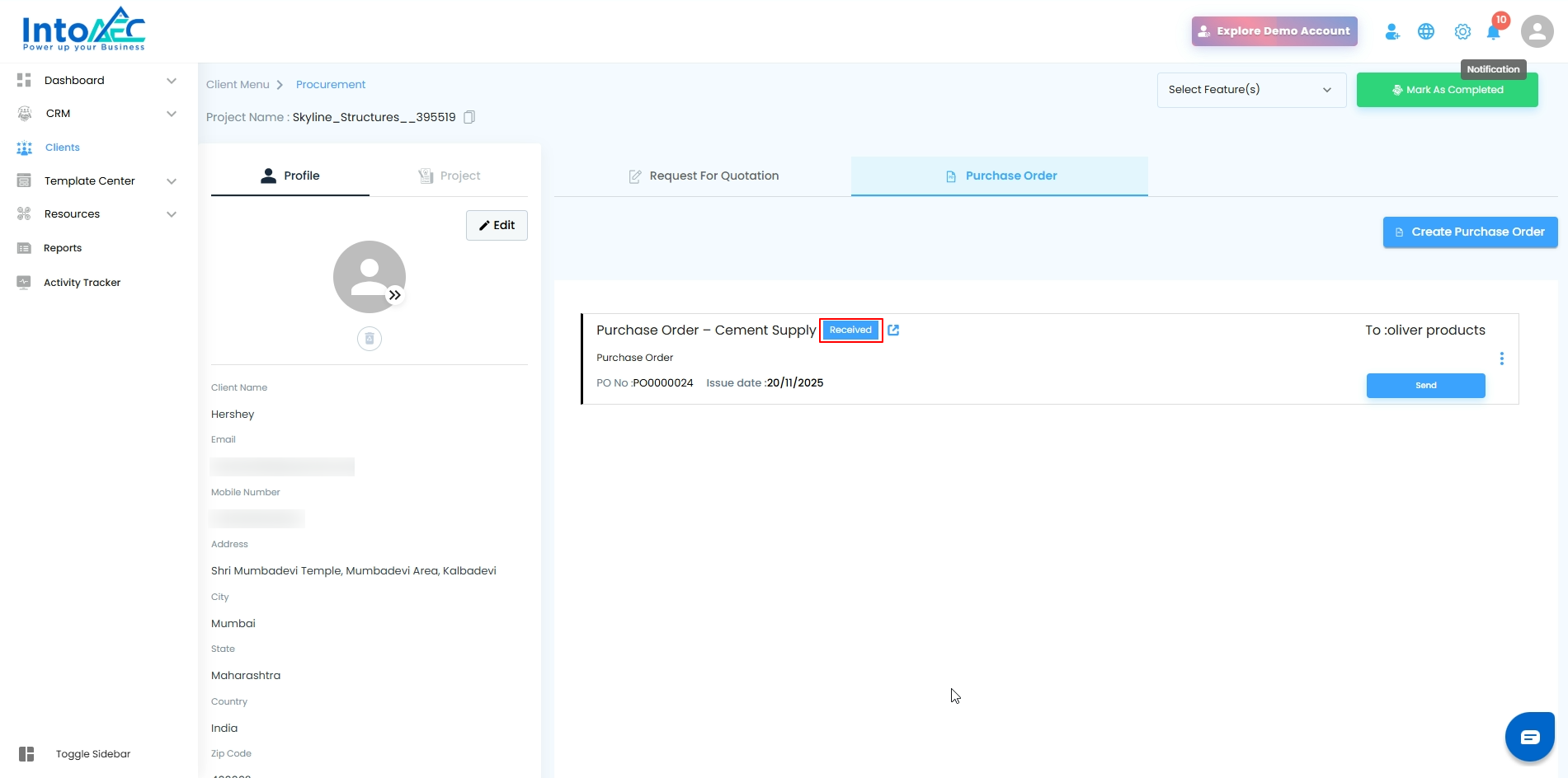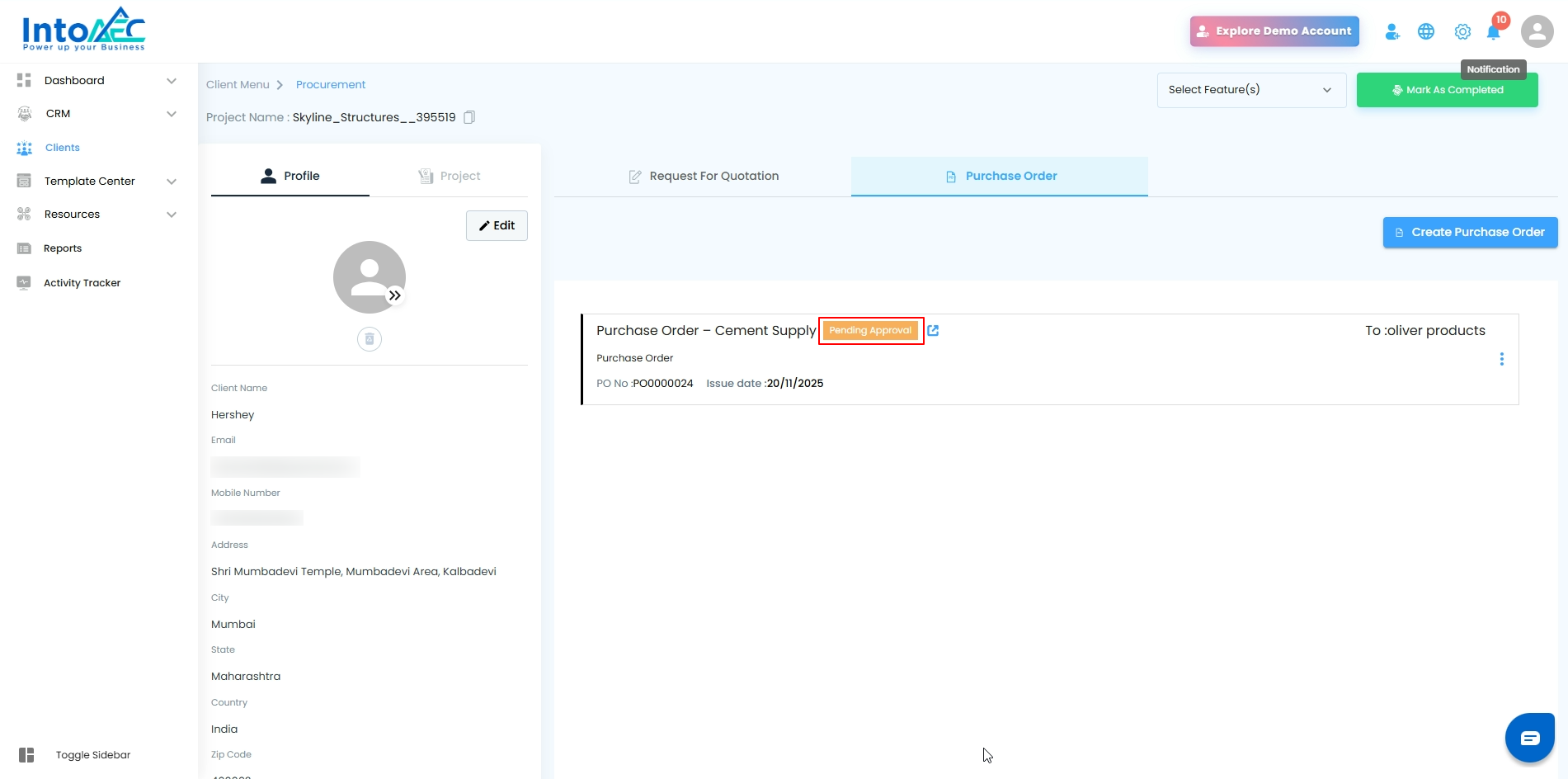 Clients → Select Client → PO