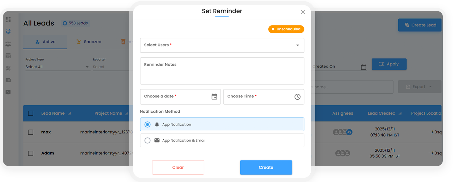 "Never miss a follow-up. Users can now set reminders for leads, making it easy to follow up at the right time."
