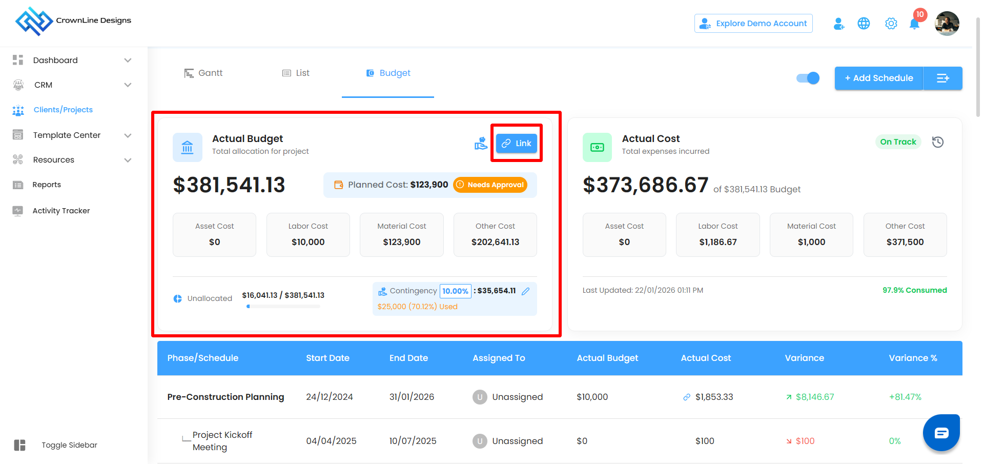 Pro Tip: Keep unallocated budget minimal to ensure accurate phase-wise cost planning.