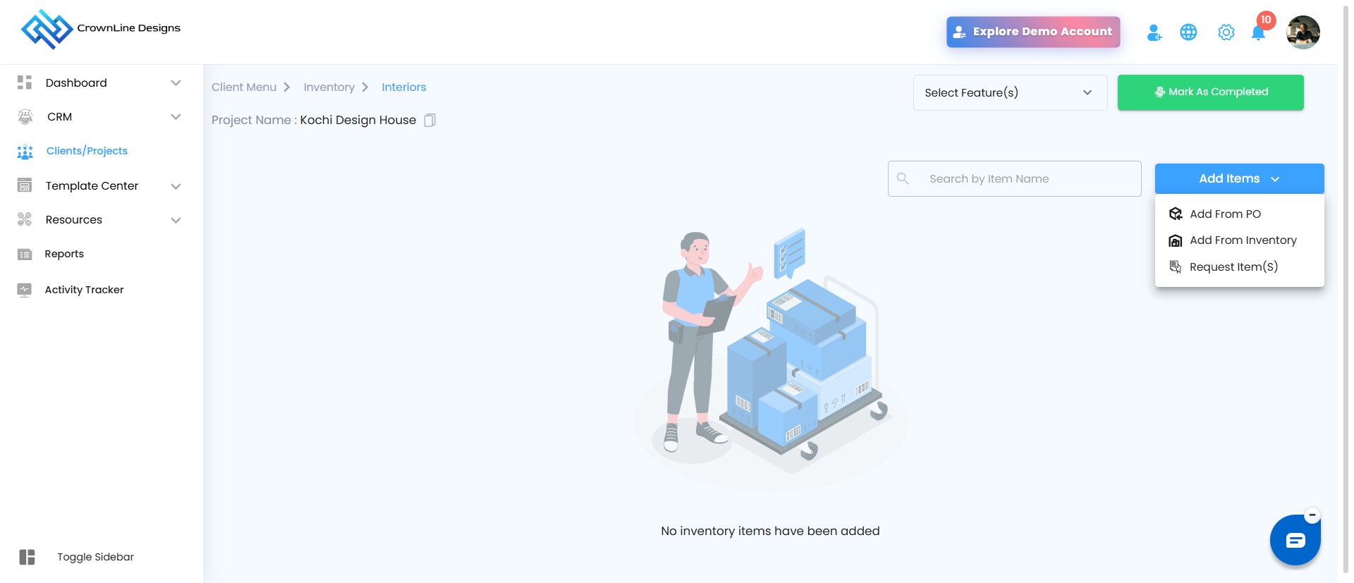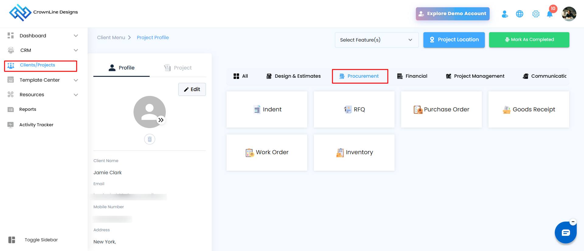 Navigate to Clients/Projects from the main sidebar.