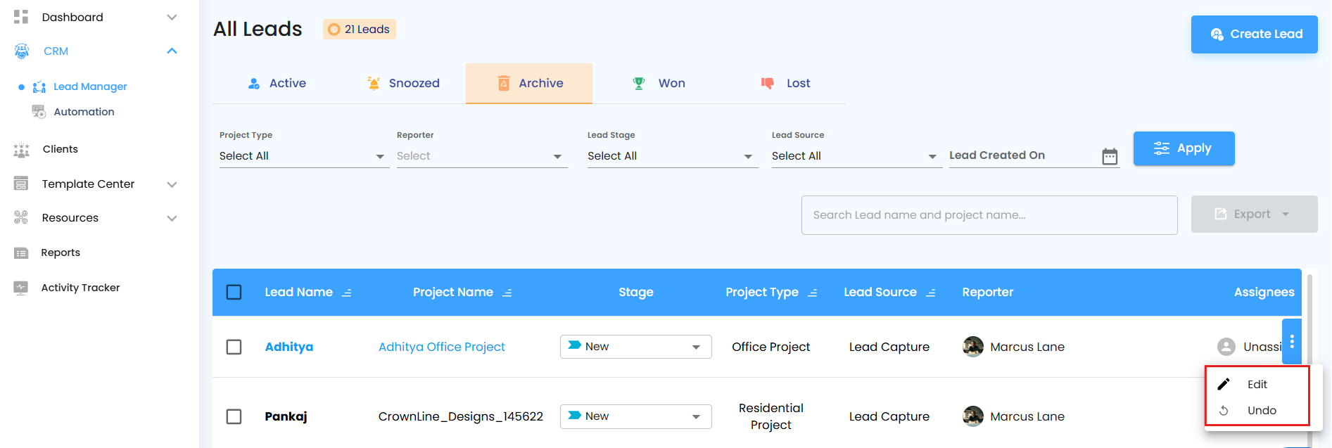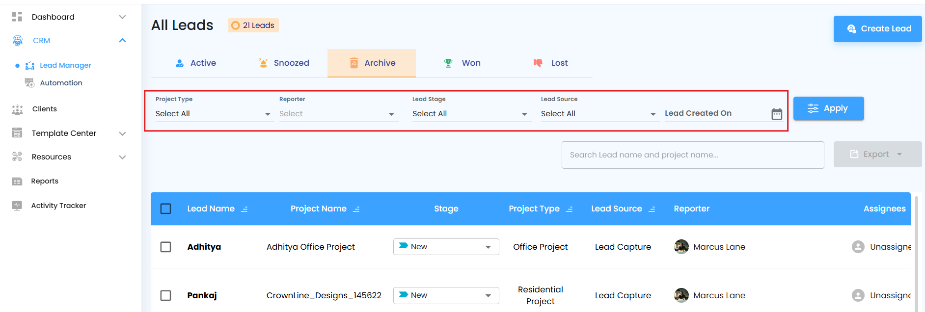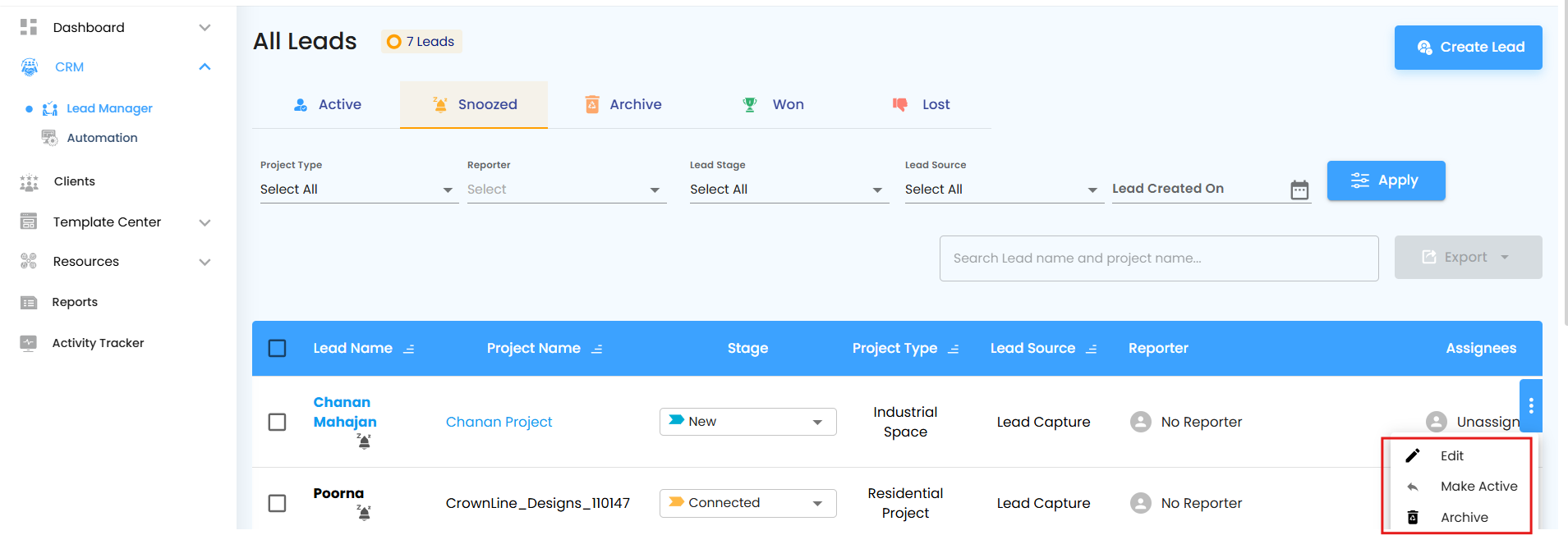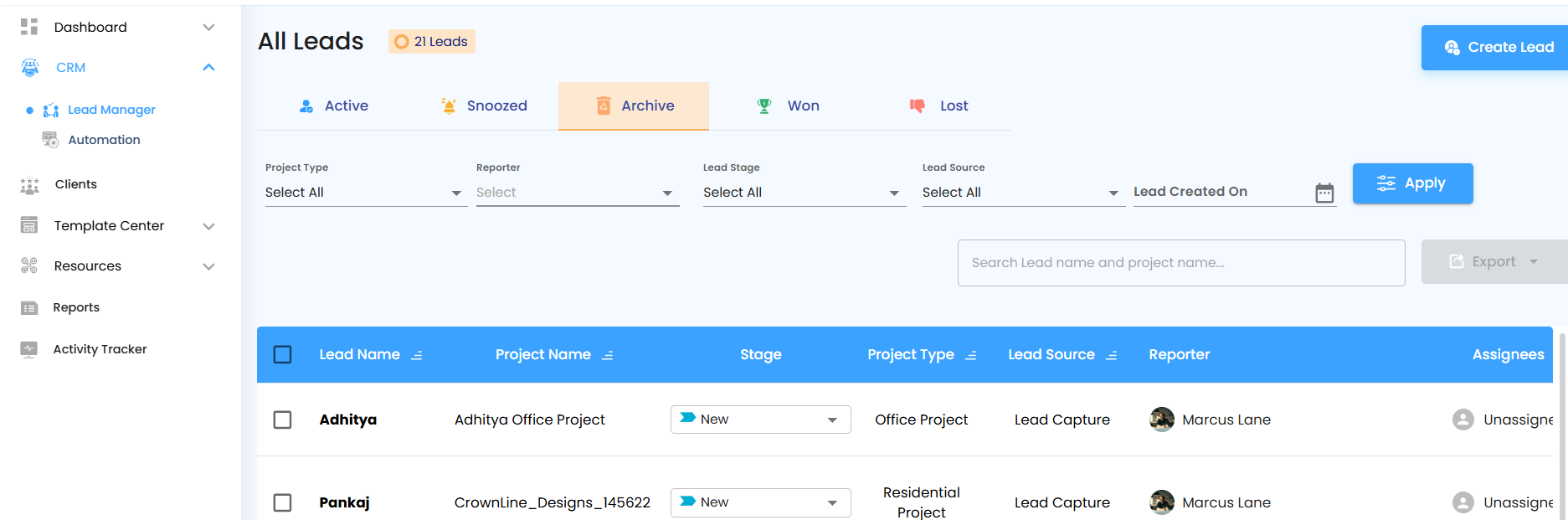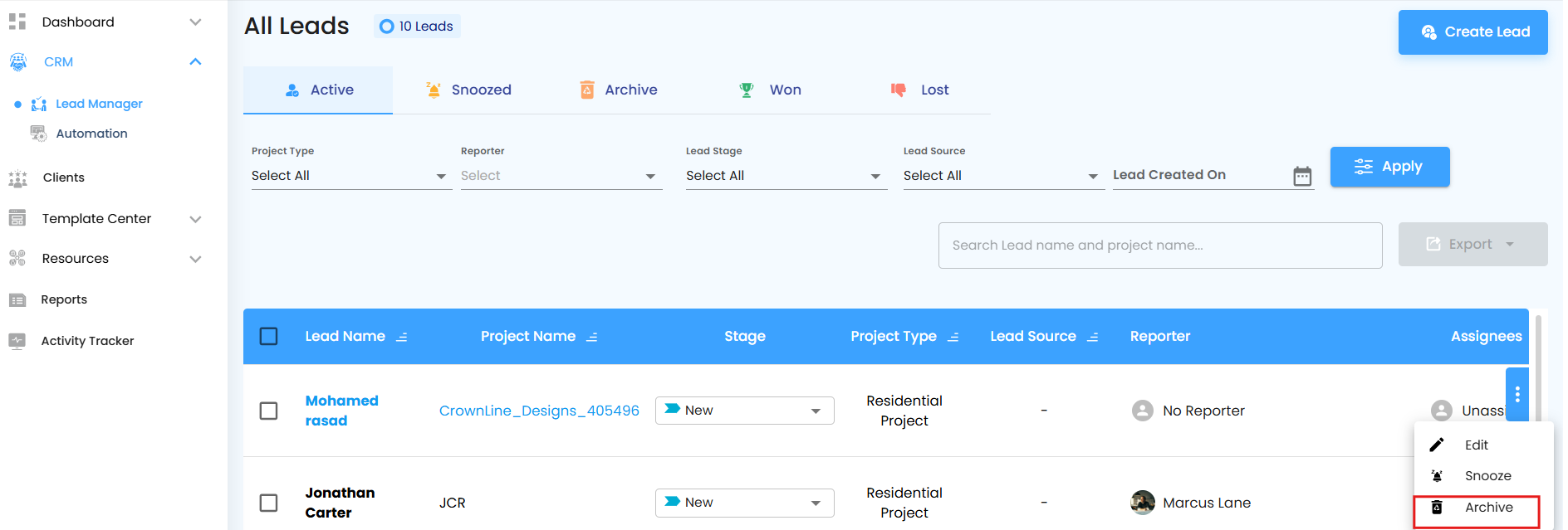 Managing leads effectively is the lifeblood of a thriving business. The Leads section empowers your team to organize, track, and act on potential clients seamlessly. With features like Active, Snoozed, Archived, Won, and Lost, you can monitor the full journey of each lead and ensure nothing falls through the cracks.