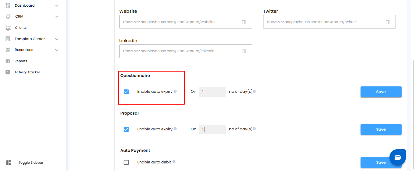 - Within Questionnaire Settings, toggle the option to Enable Auto Expiry.