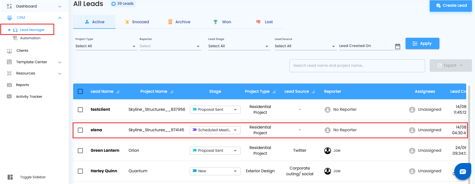 - Navigate to the Lead Manager  — your command center for all prospects.