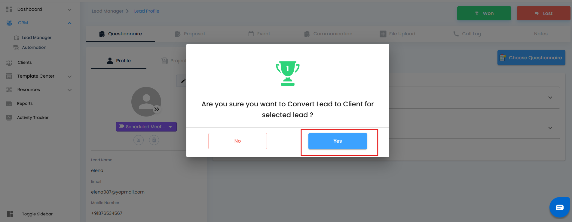 Click Yes, and just like that, your lead is no longer in the “maybe” stage — they’ve become a valued client.