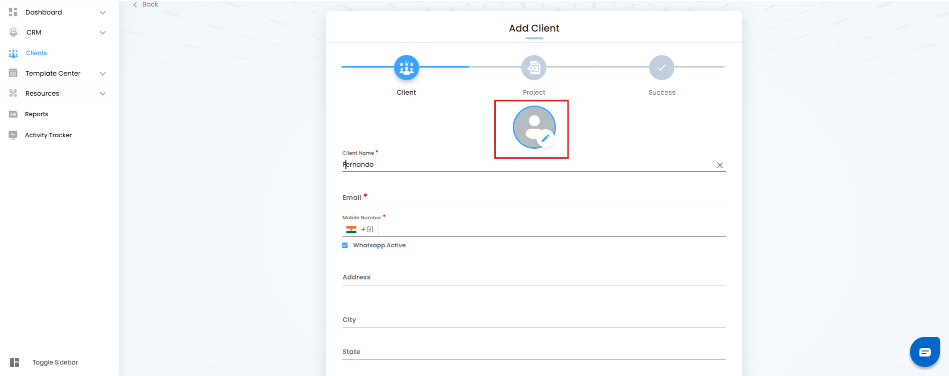 4. You also have the option to upload a photo of the client. Click on this option if needed.