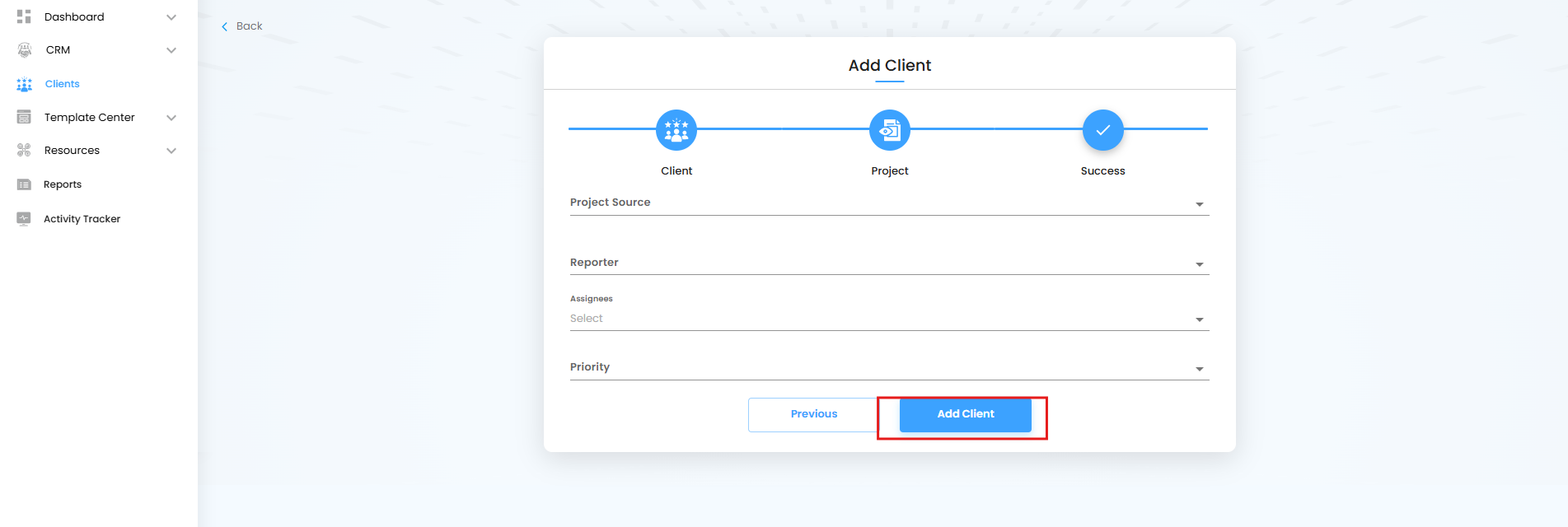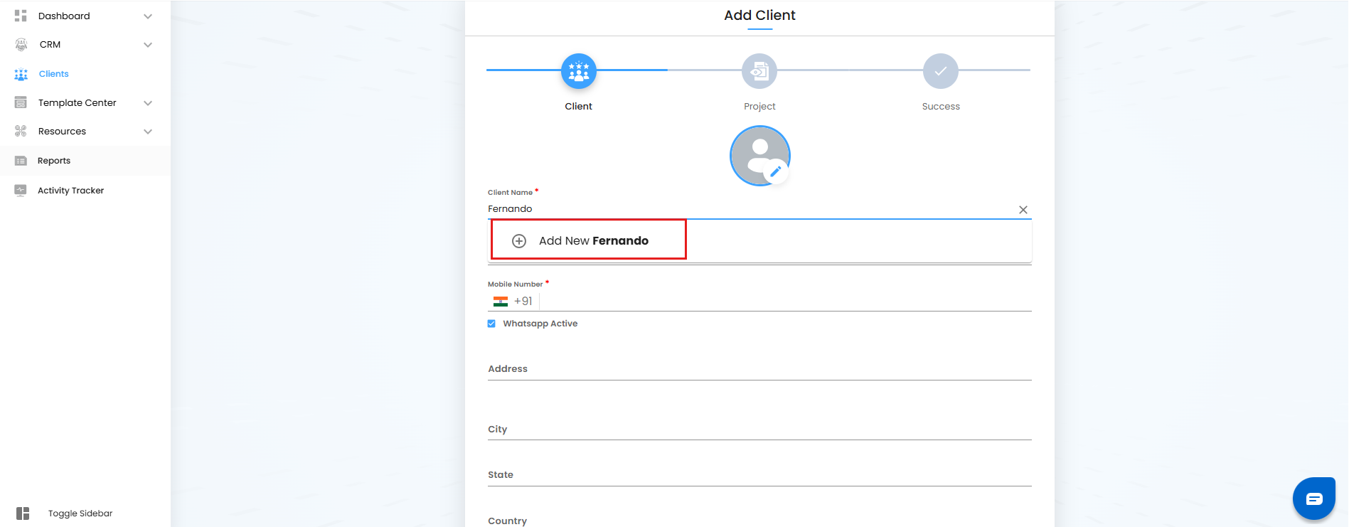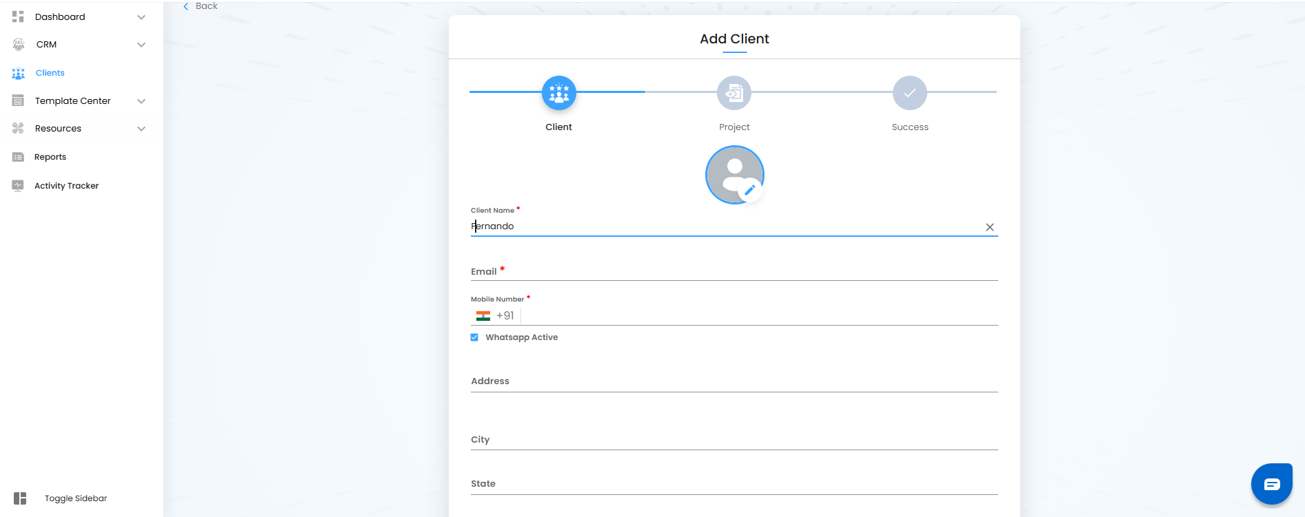 3. This action will direct you to a page where you can input all necessary information about the client.