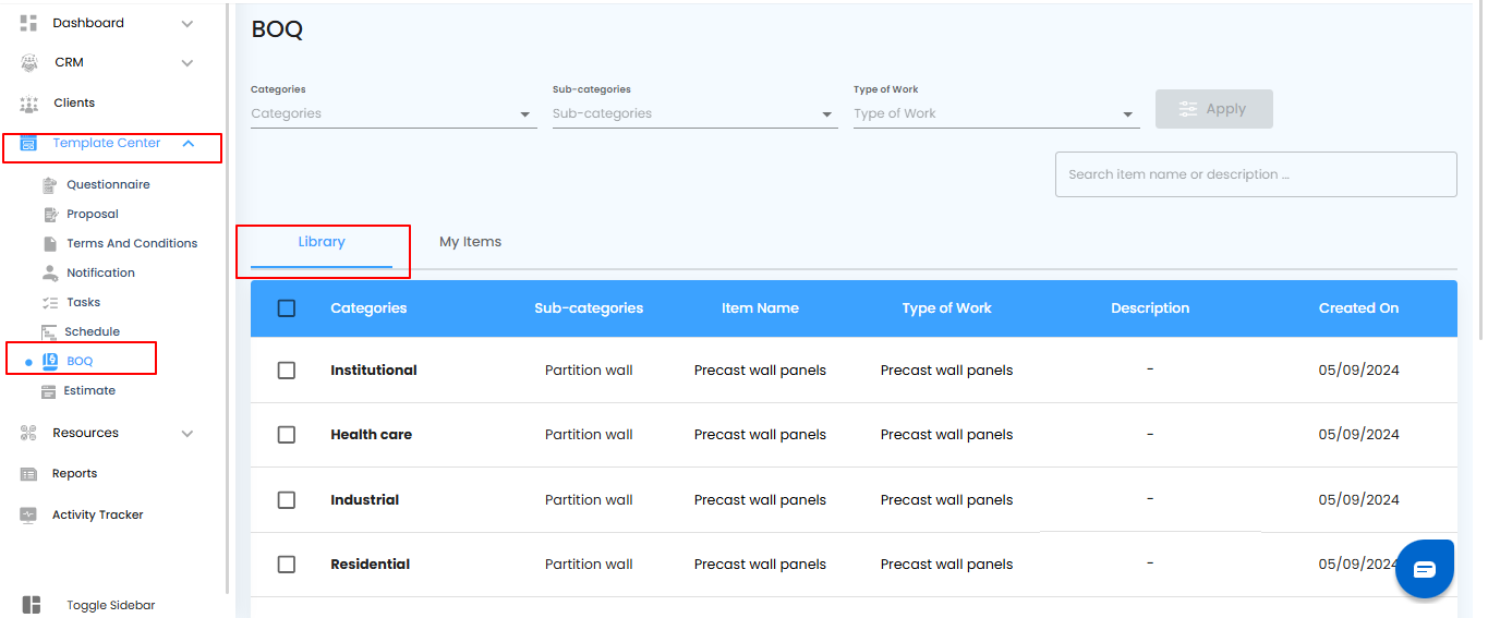 - Library – A repository of pre-defined items curated by IntoAEC, offering a ready-made collection for quick and efficient use.