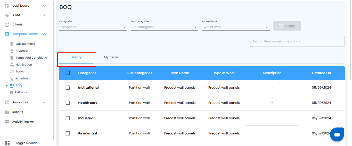 Pro tip: Start with the Library to save time—these pre-defined items cover common project needs and ensure consistency across projects.