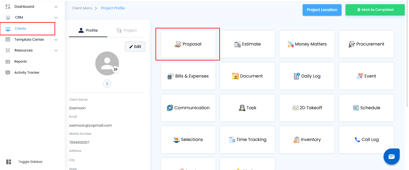 - Click on Proposal to view the proposals associated with that client.