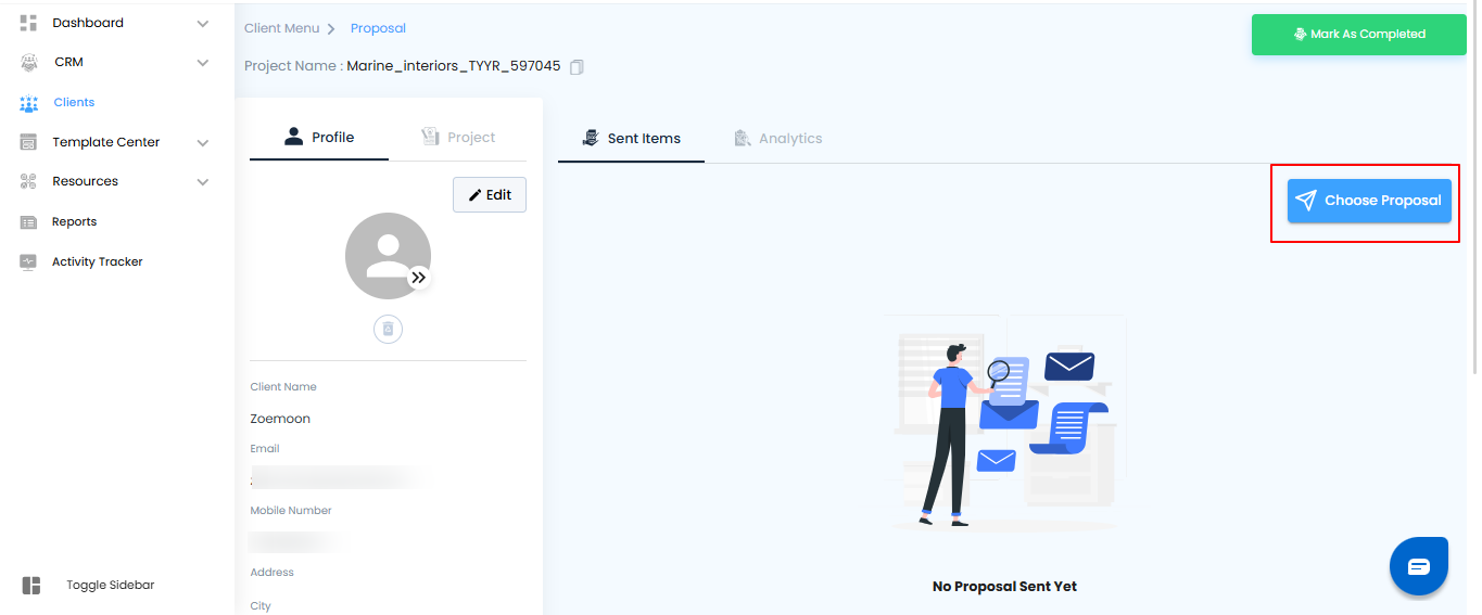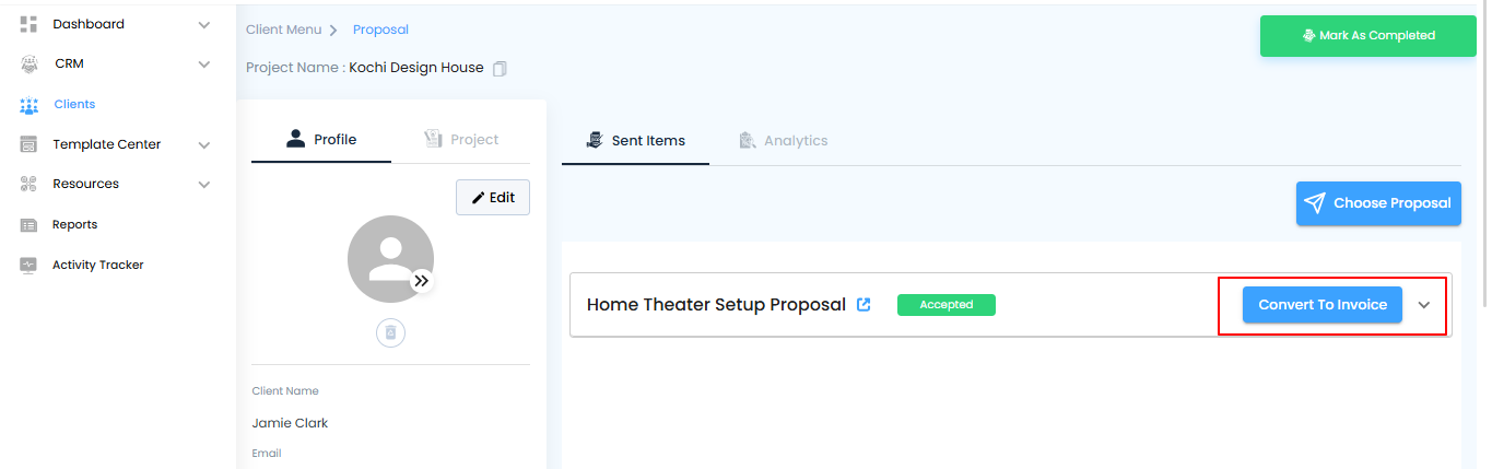 Pro tip: Double-check that you’ve selected the correct client and proposal to avoid errors in invoicing.