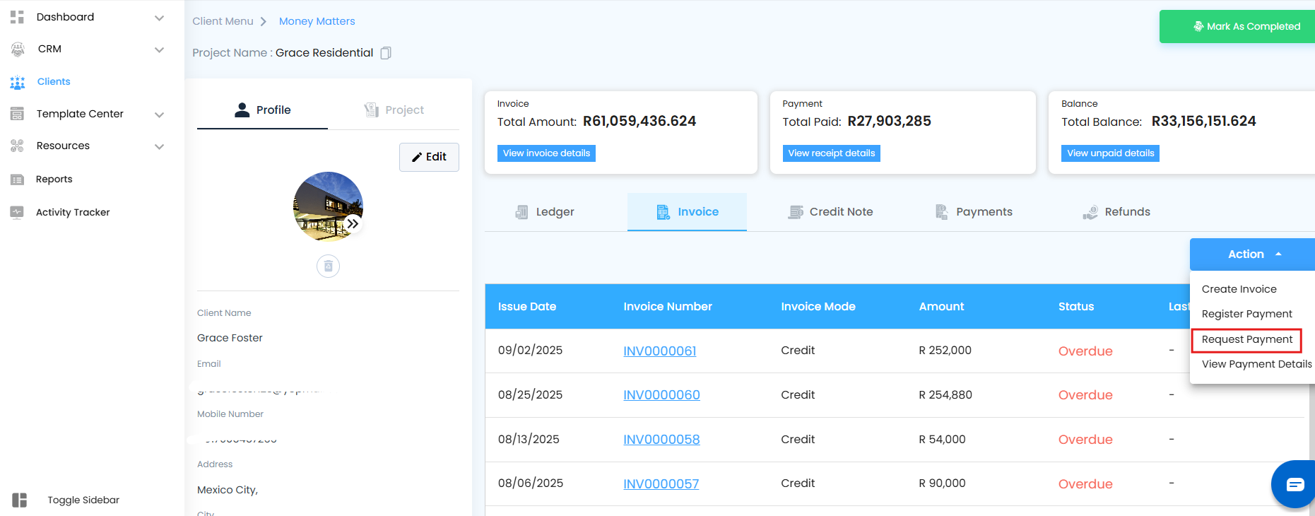 - The client checks their inbox and clicks on the Request Payment Link.