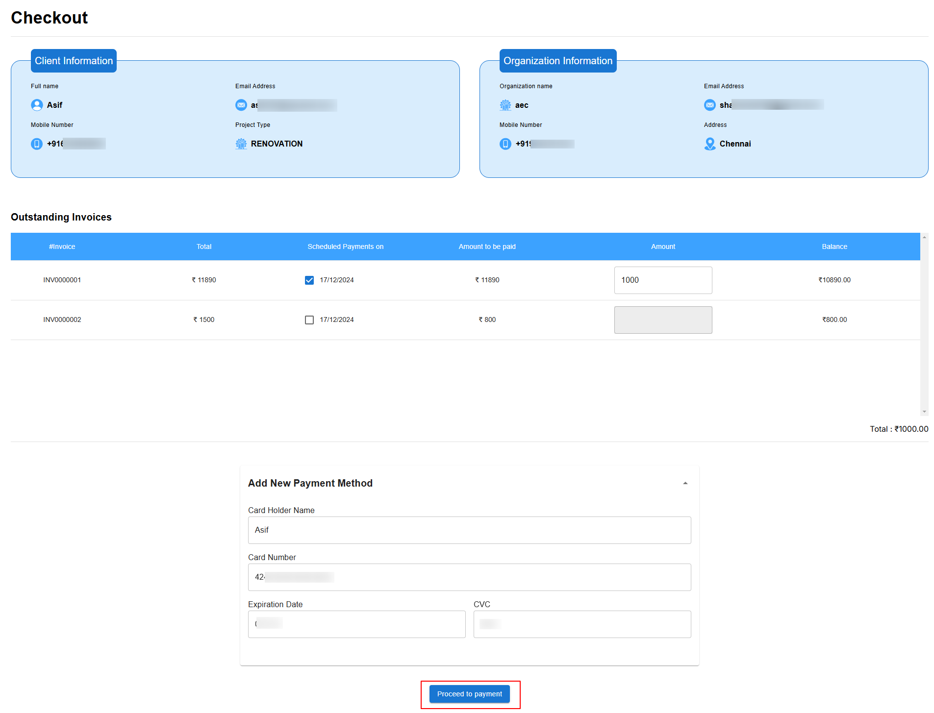 - The client clicks Proceed Payment.