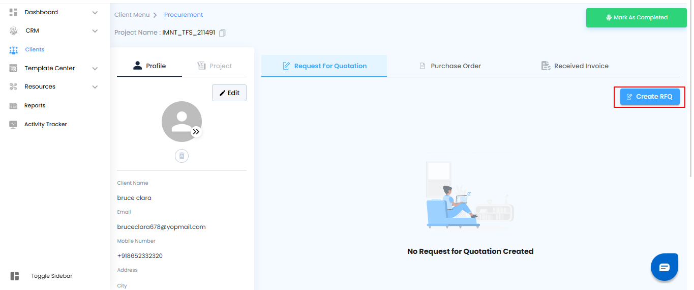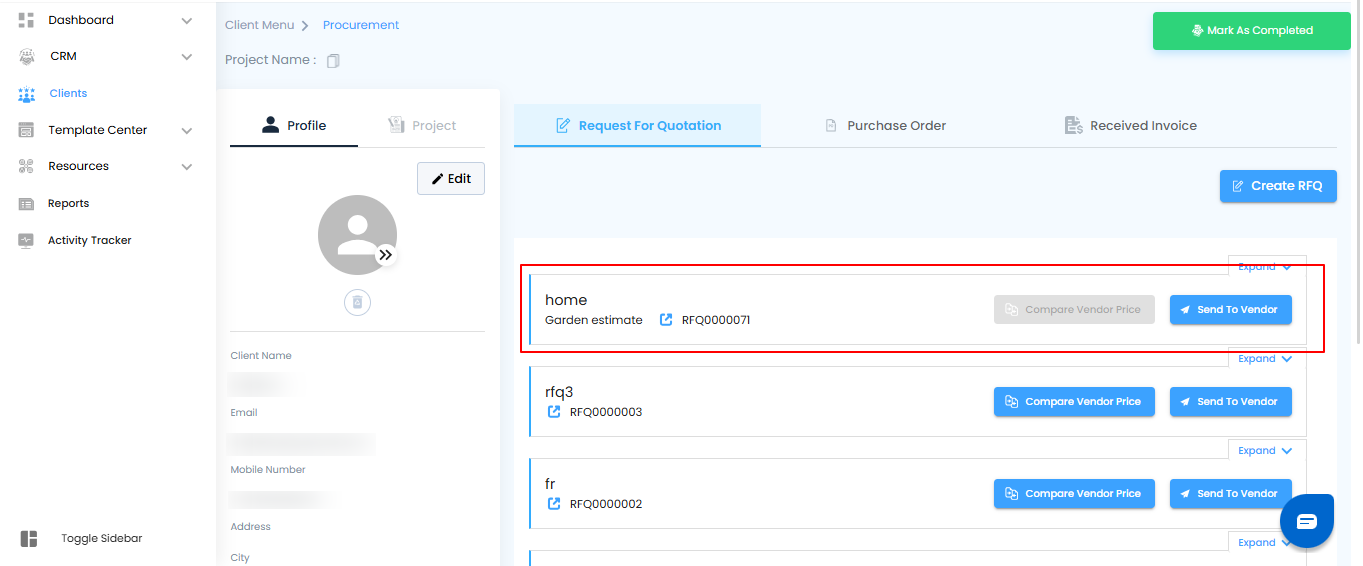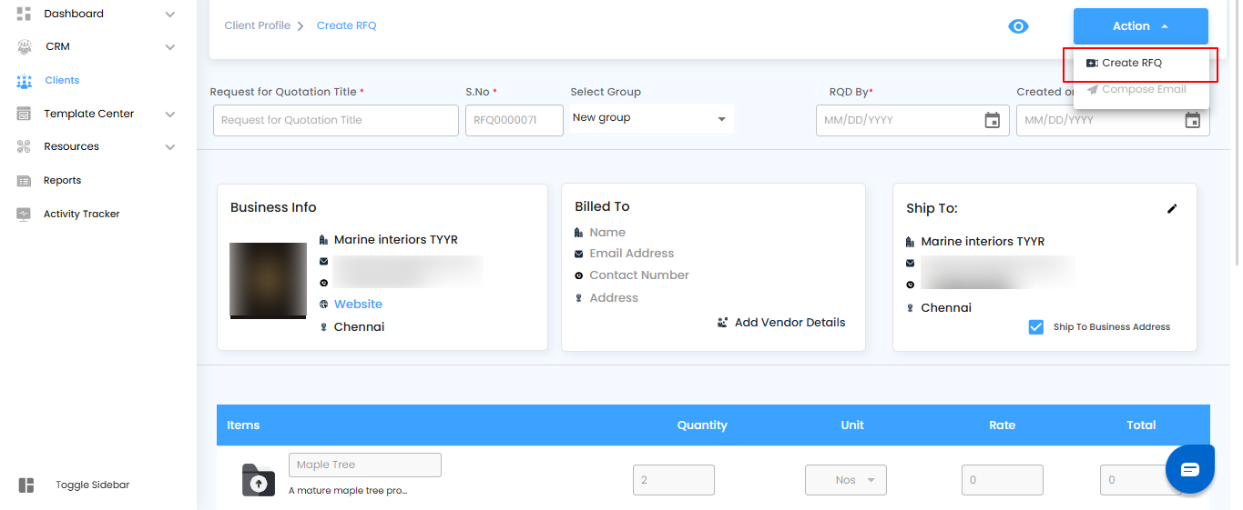Pro Tip: Always confirm that you’re working under the correct client and project before creating an RFQ to prevent duplicate or misplaced requests.
