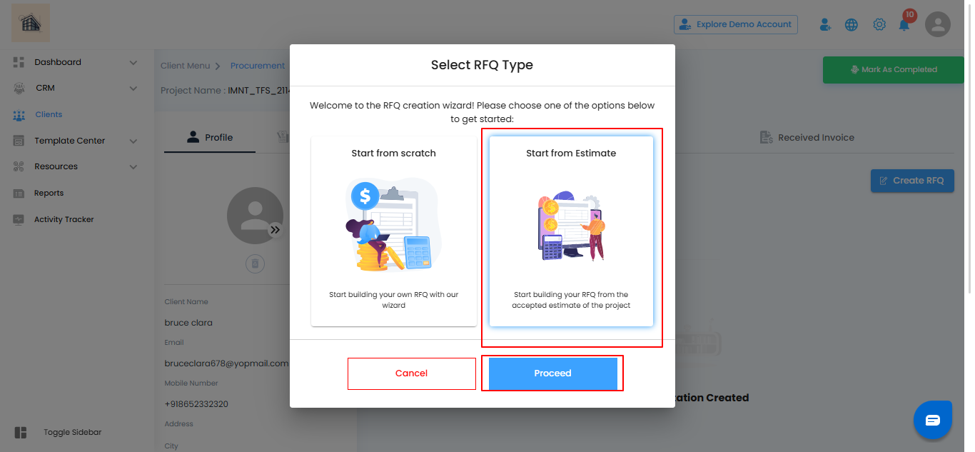 - Choose the Client – Pick the specific client for whom the estimate has been accepted.