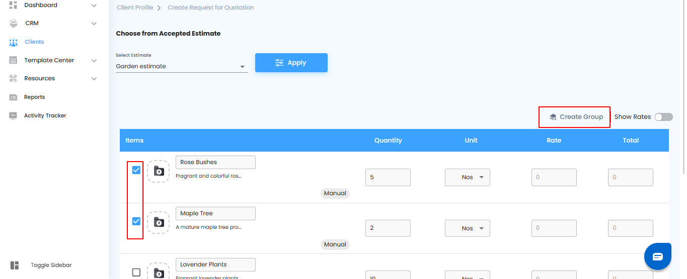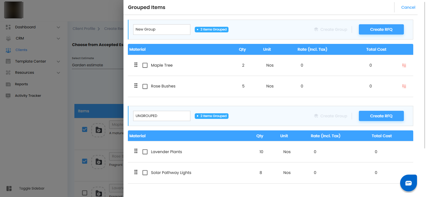 Pro Tip: Starting from an accepted estimate ensures accuracy, as all the pre-approved details (items, quantities, and pricing) will flow directly into your RFQ without manual re-entry.
