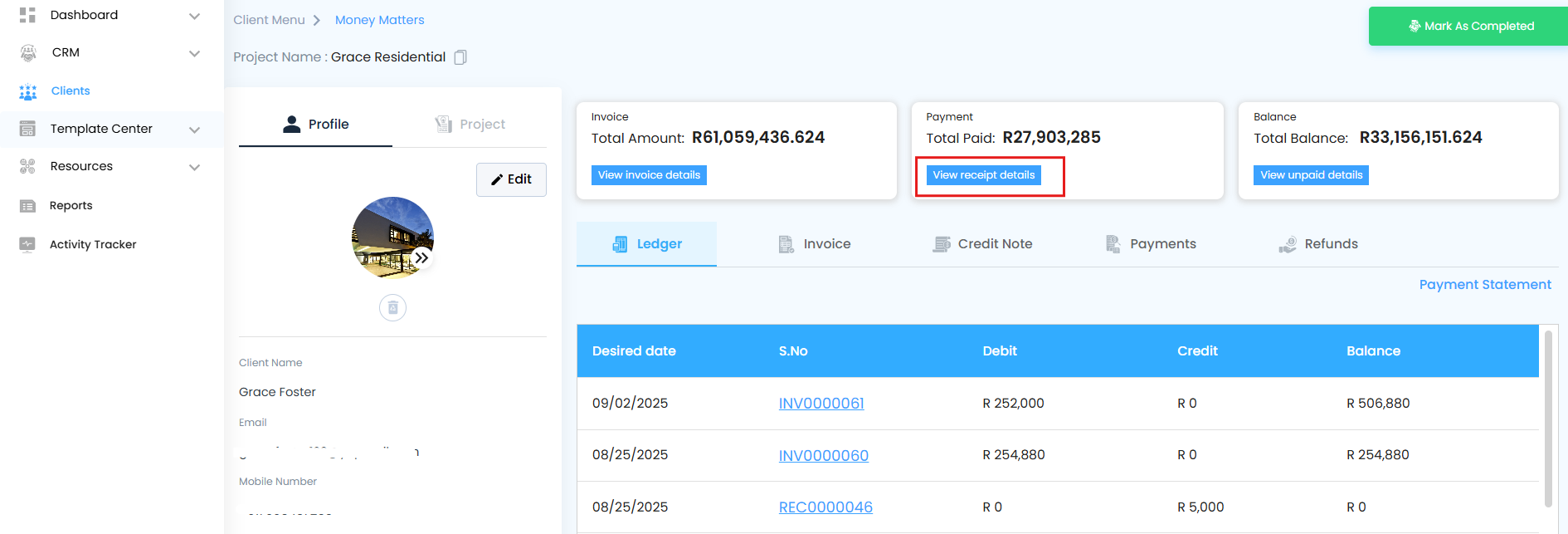 Receipts are more than just proof of payment — they’re snapshots of trust between you and your client. With IntoAEC, you can view, track, and analyze receipts in a structured, easy-to-read journal that keeps your financial history crystal clear.