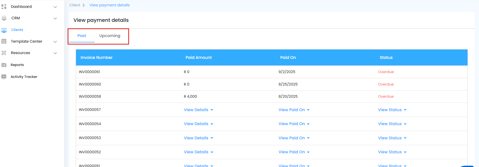 - Past Payments → Shows all completed or historical payments, making audits and reviews effortless.