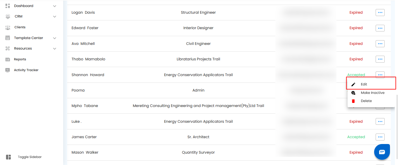 When a user’s status is Accepted, you can update their details and access rights as needed: