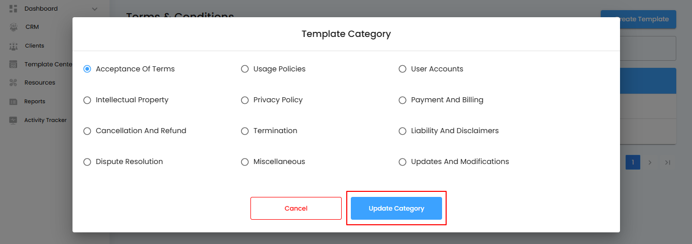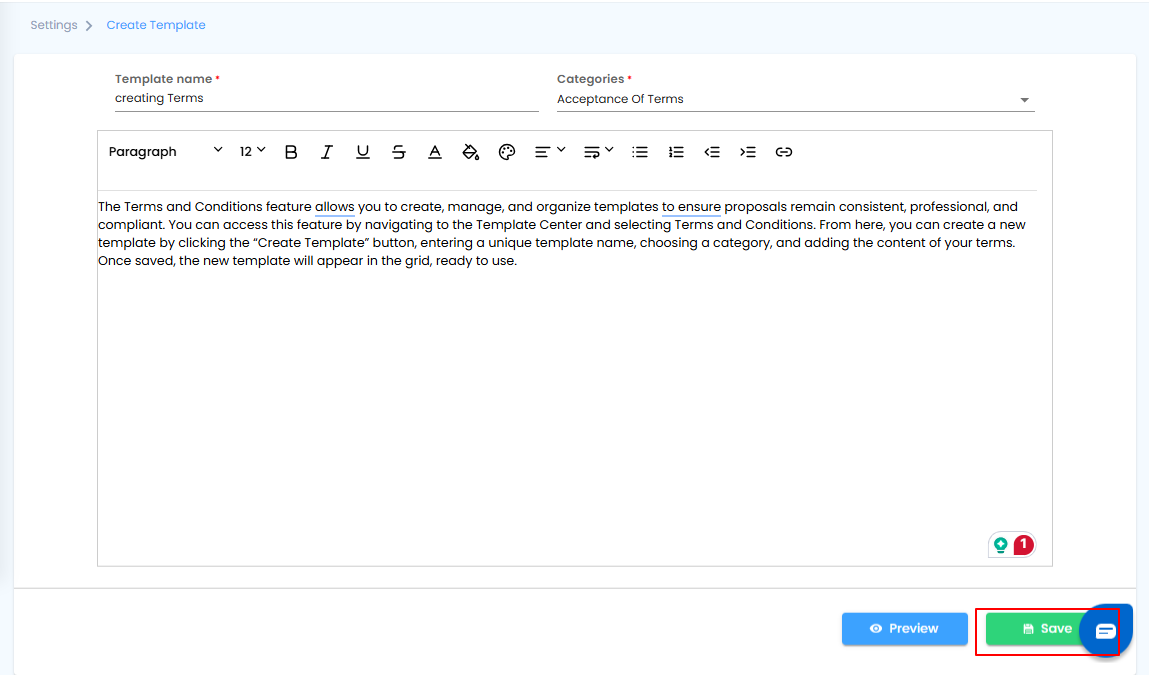 By using these features, you can streamline the creation, editing, and organization of your Terms and Conditions templates, ensuring consistency, clarity, and easy management across your organization.