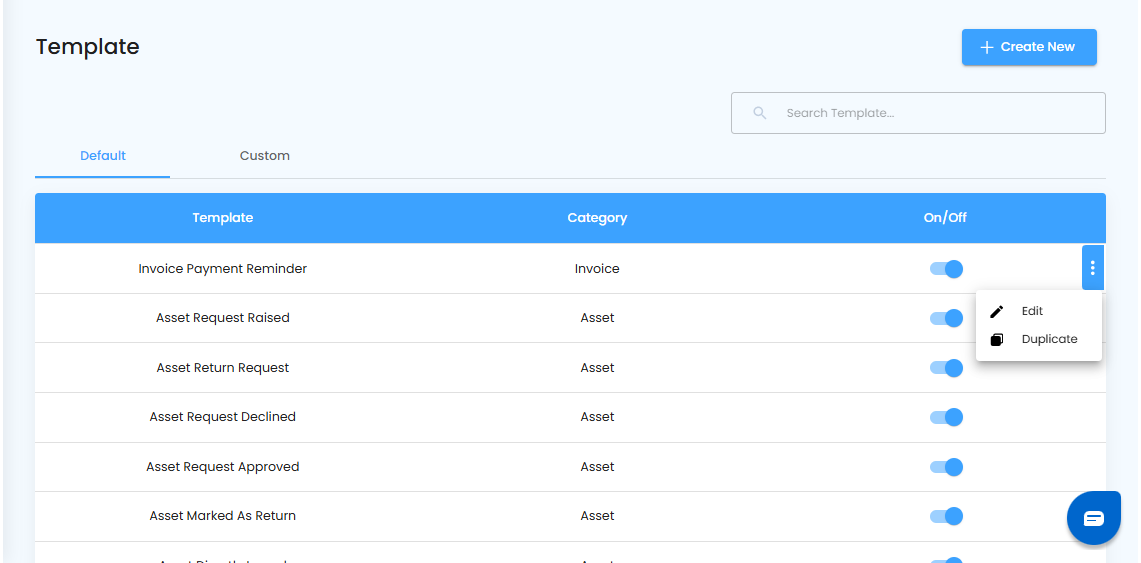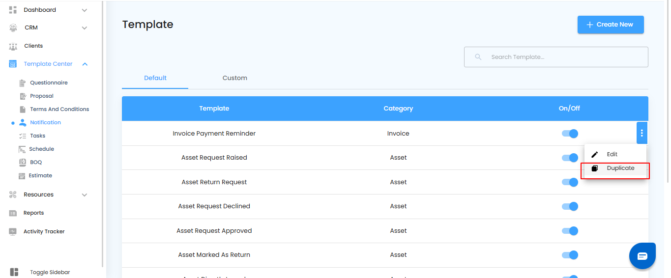 Every duplicated template is automatically stored under the Custom section, keeping your personalized versions separate from the default.