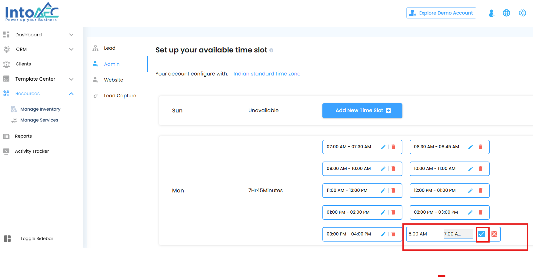 - Architects can set their available slots from Sunday to Saturday, allowing leads to select meeting times that fit both schedules.