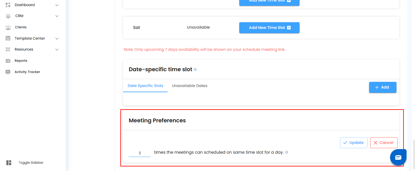 Pro tip: Regularly update time slots and meeting preferences to prevent double bookings and provide accurate availability to leads.