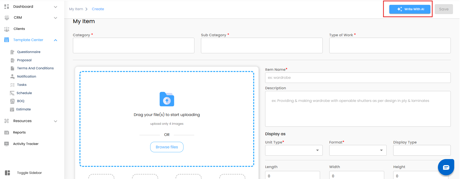 Tap on Write with AI to unlock a smart assistant that does the heavy lifting for you. Whether it’s technical descriptions, item breakdowns, or structured details — AI brings clarity, speed, and accuracy.