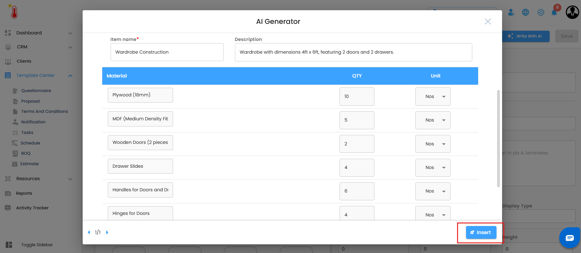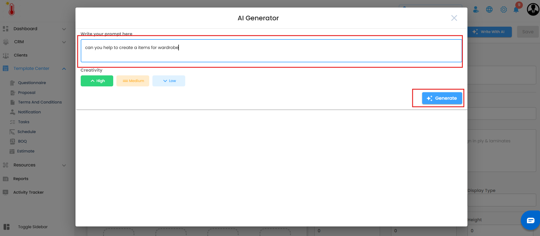 Hit the Generate button and watch as AI instantly crafts content that aligns with your BOQ needs.
