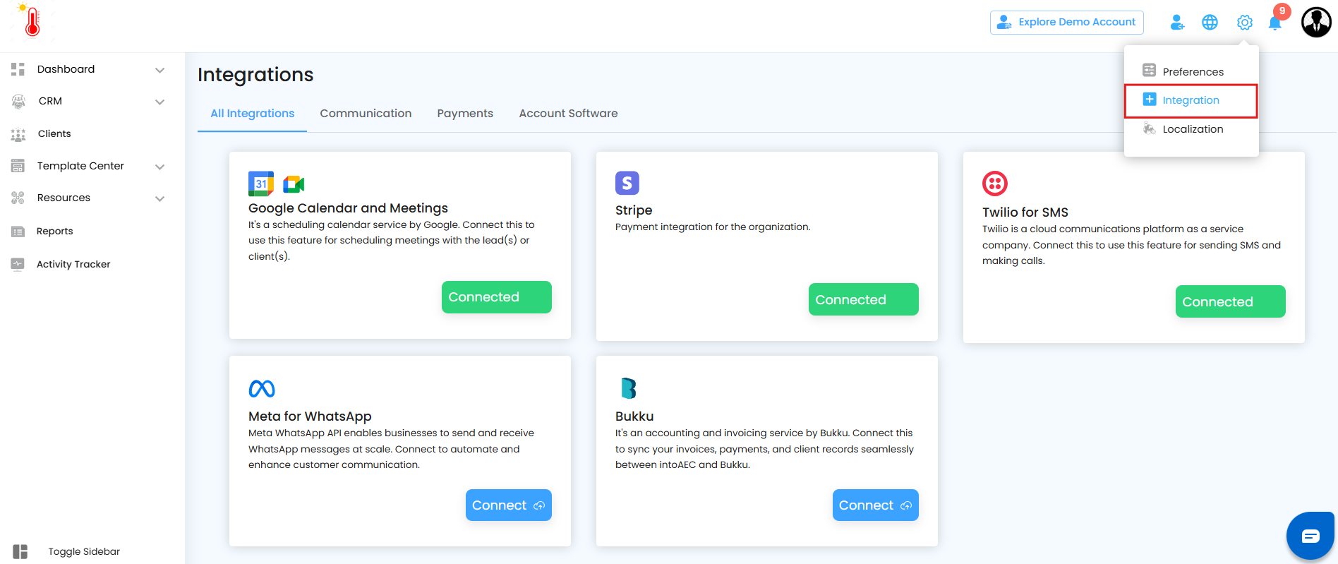 - Open the Gateway to Integration - Go to Settings > Integration.