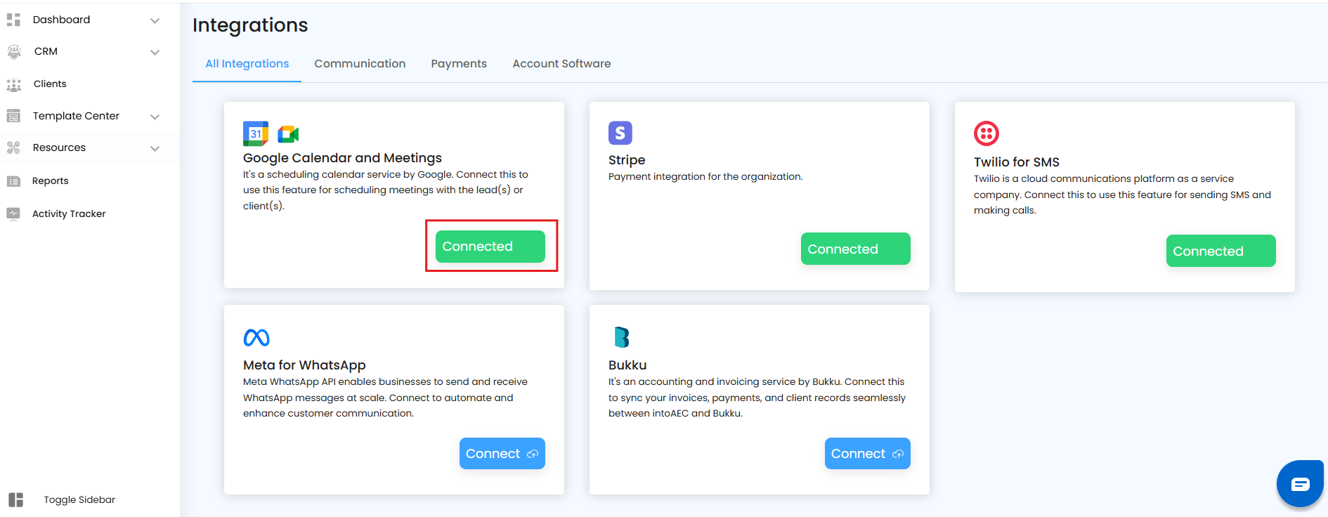 - The status for Google Calendar & Meet flips to Connected — confirming your integration is live.
