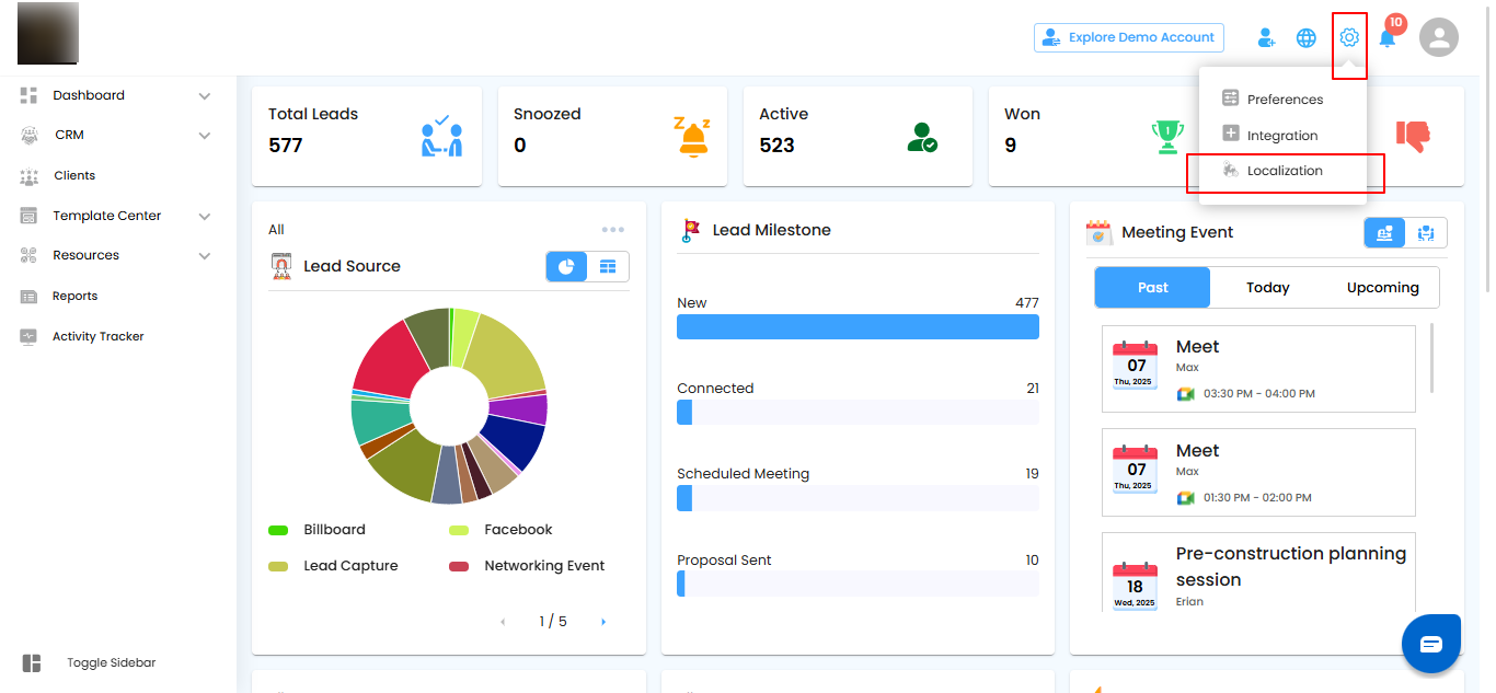 - Select Localization from the dropdown menu.