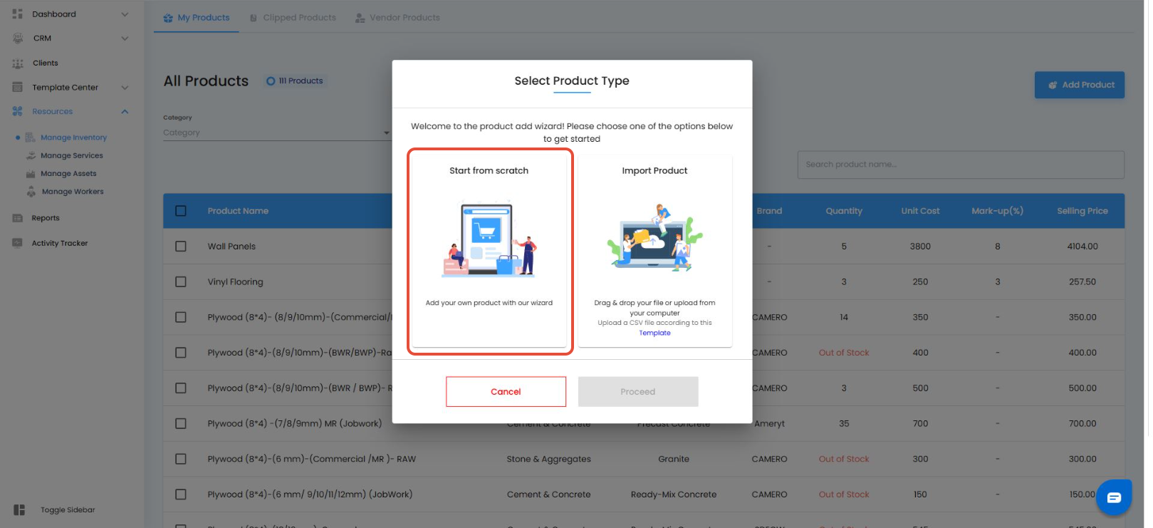 - Choose "Start from Scratch" as the product type and click Proceed.