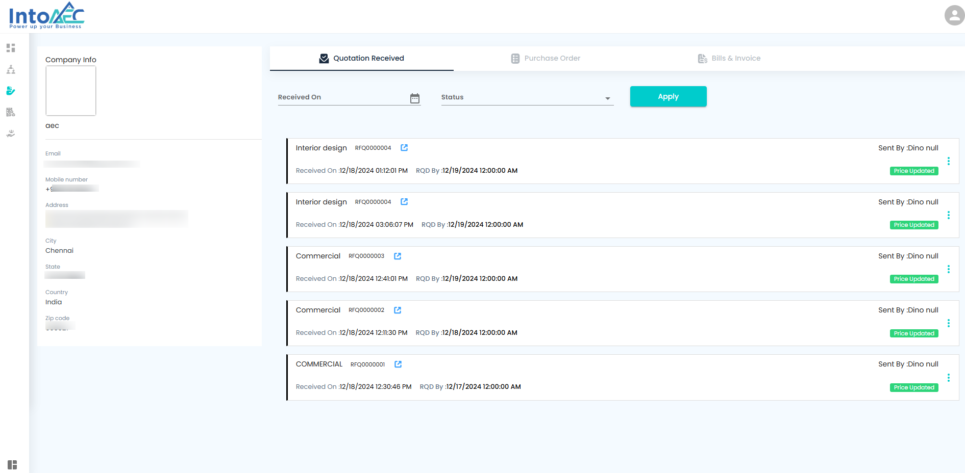 Once a quotation is accepted, it evolves into a Purchase Order. The portal ensures smooth tracking: