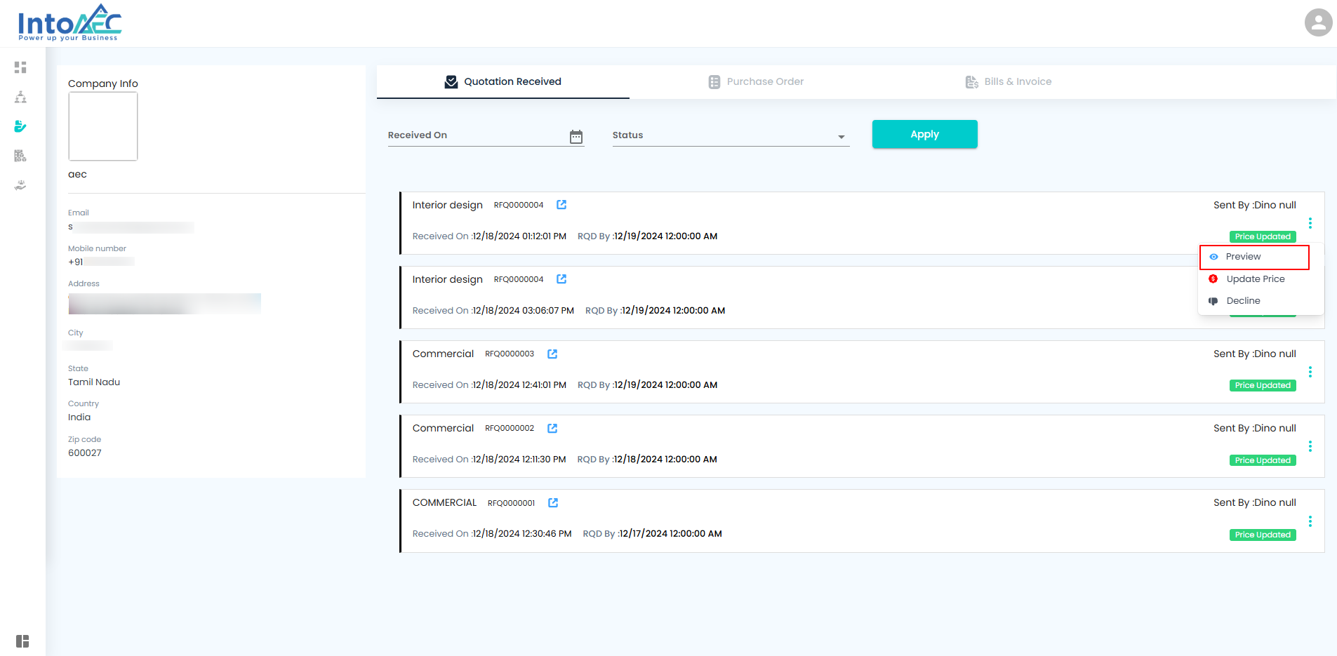 - Enter the from-to dates and click on the Apply button to filter the quotations.