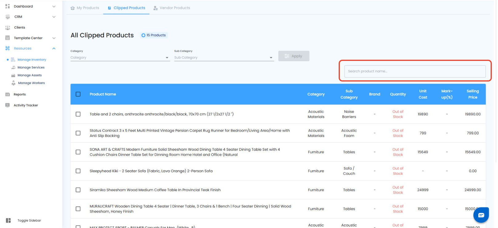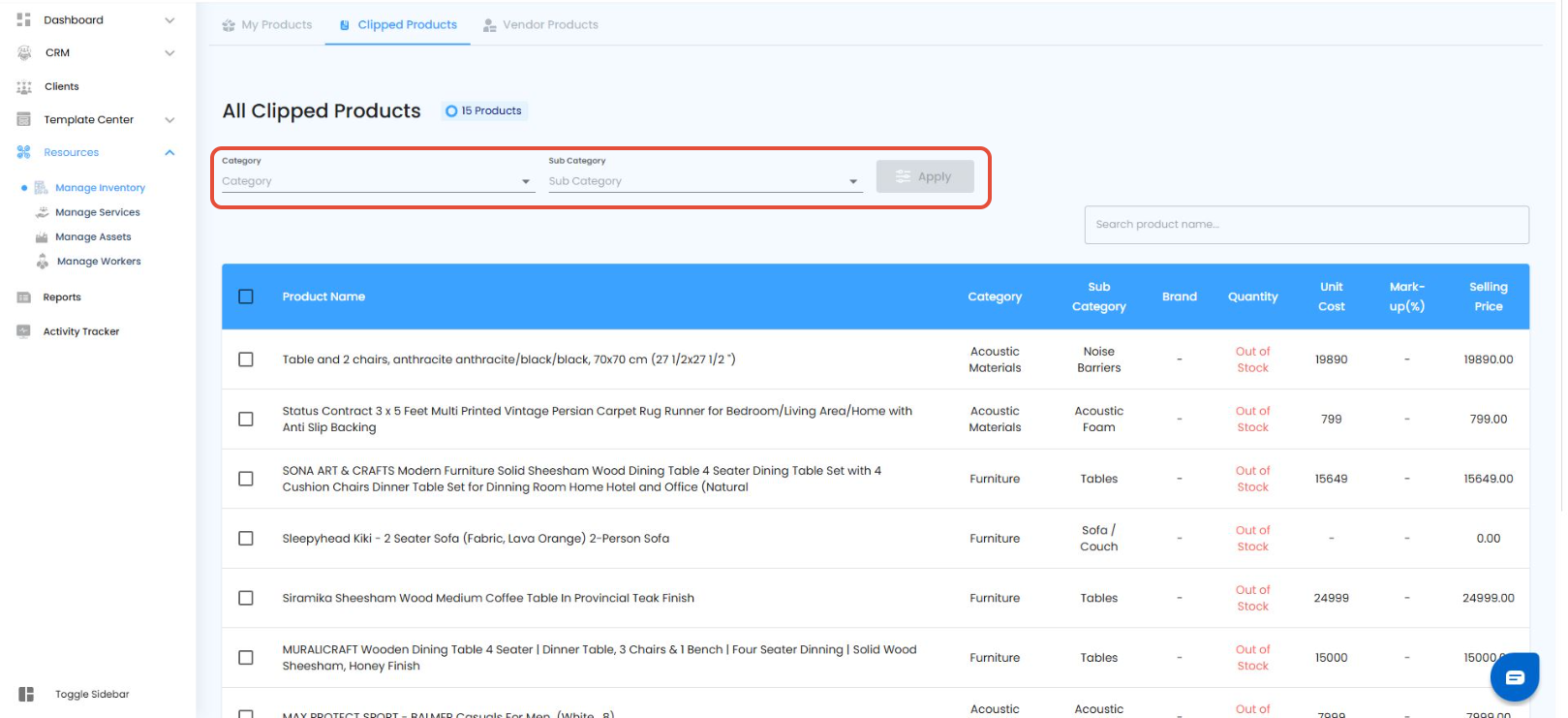 - Go to "Resources" > "Manage Inventory" > "Clipped Products".