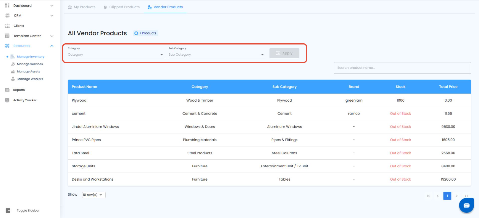 - Navigate to "Resources" > "Manage Inventory" > "Vendor Products" to see the products listed by other vendors.