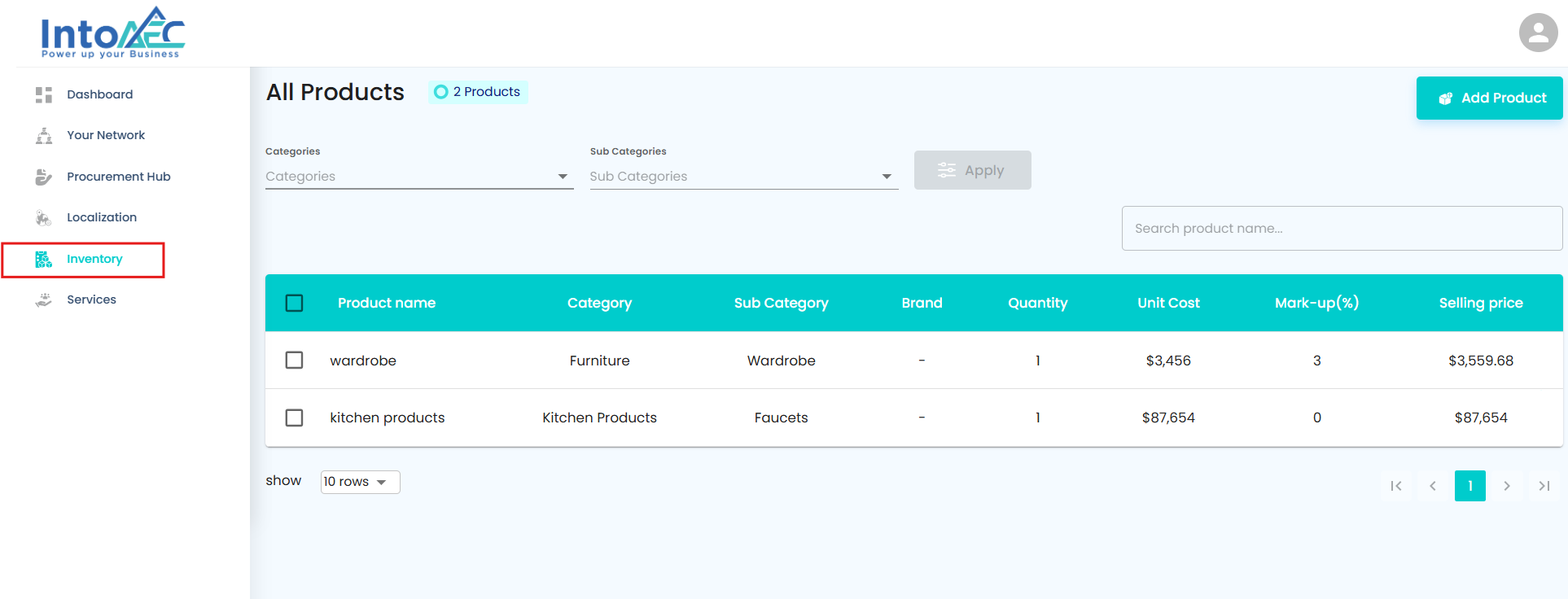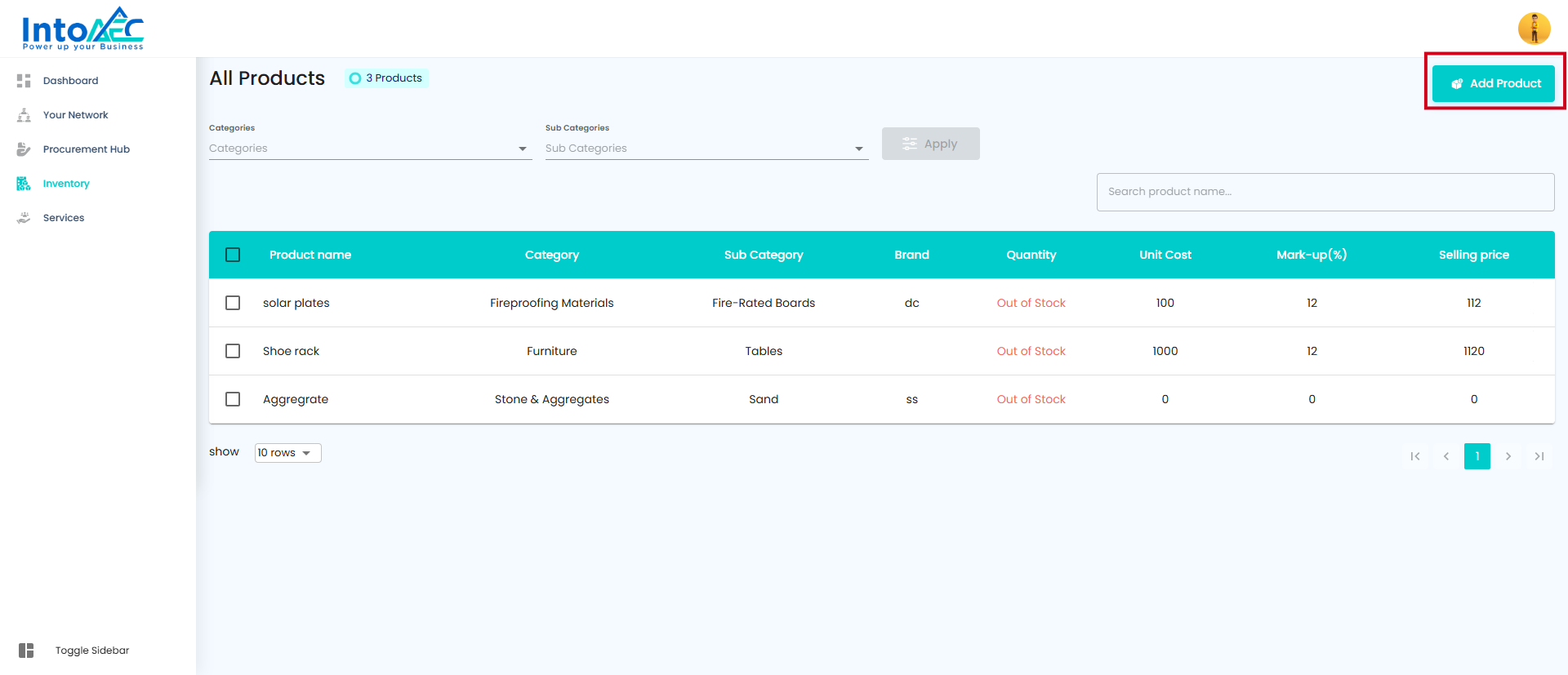 Click on the Add Product button.
