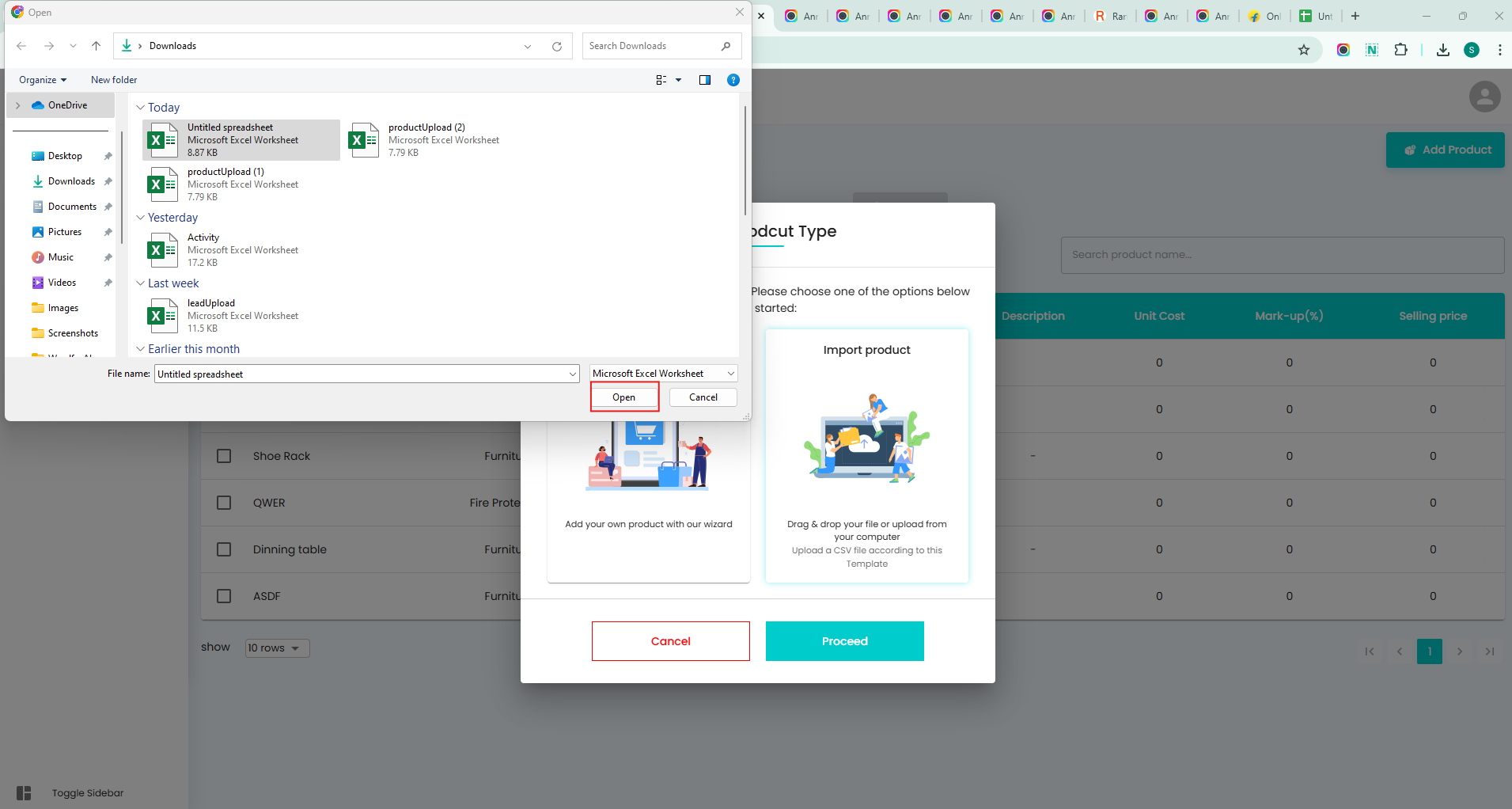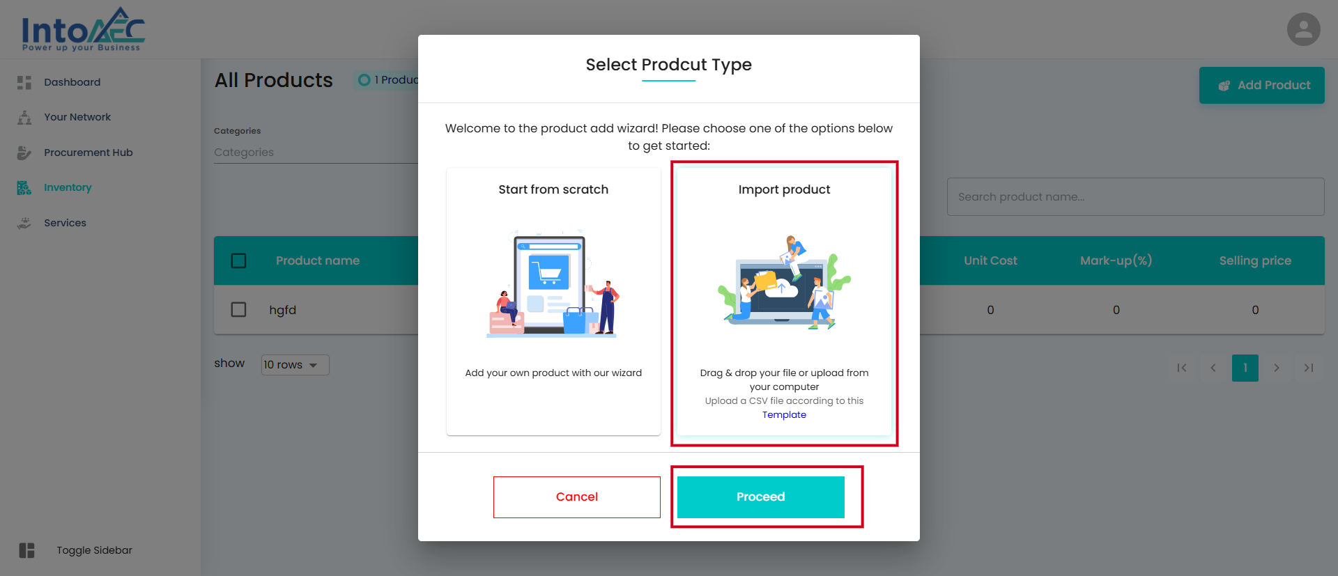 Select Import Product as the product type.