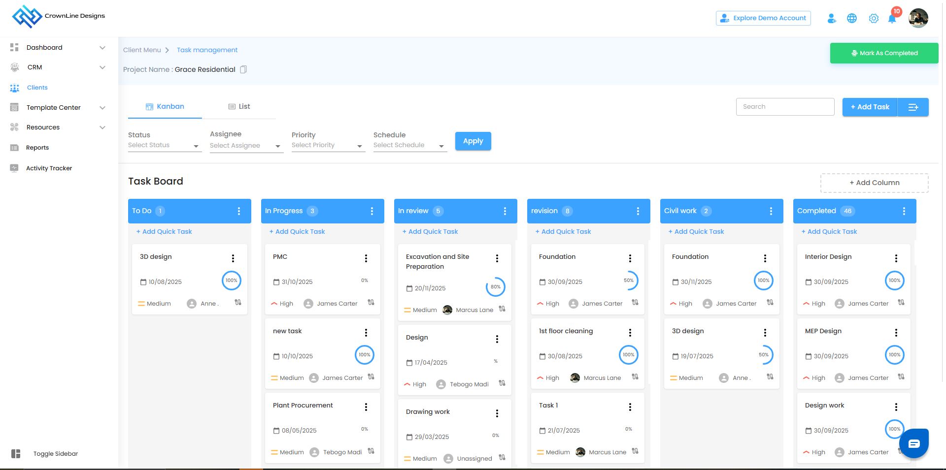 From here, you can create, assign, and track tasks — turning complex projects into an organized, collaborative workflow. Task Management isn’t just about tracking work; it’s about creating clarity, accountability, and progress for every client project.