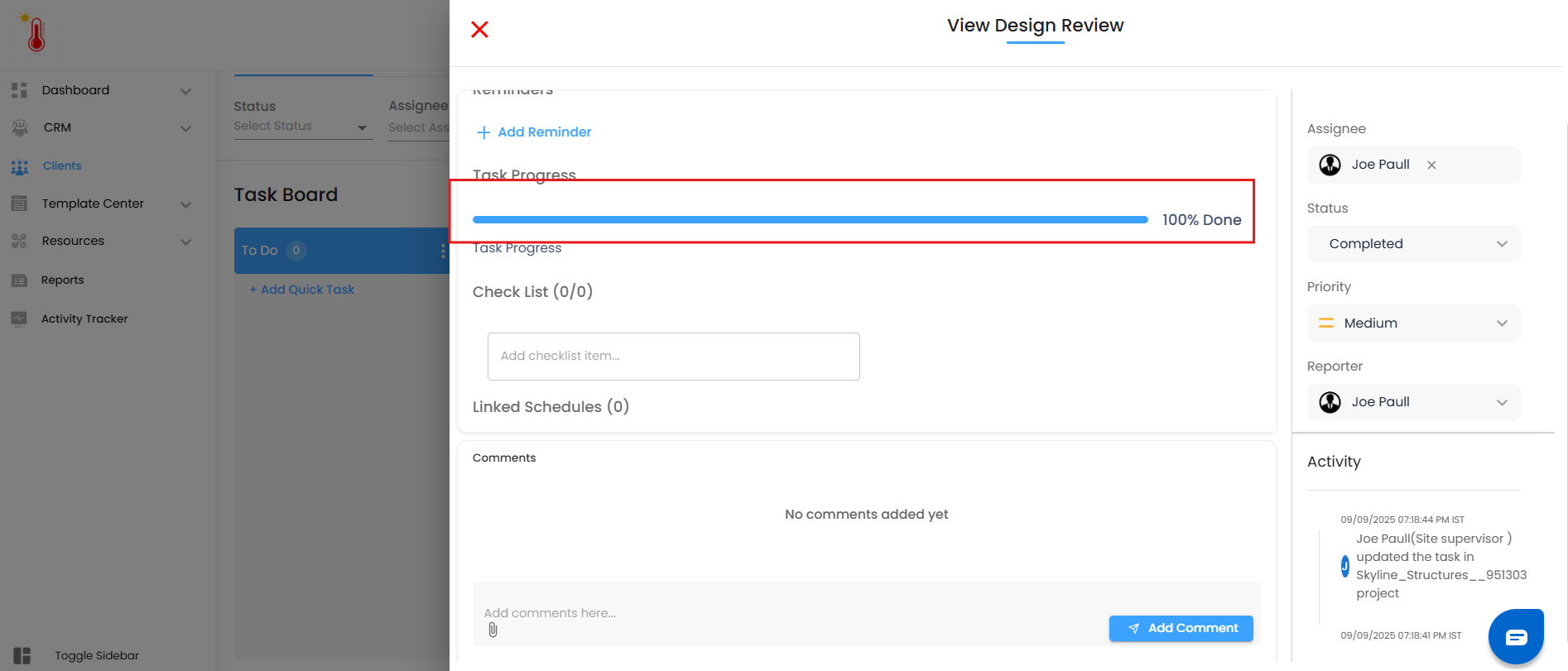 The new task instantly appears on your Task Board, ready to be tracked.