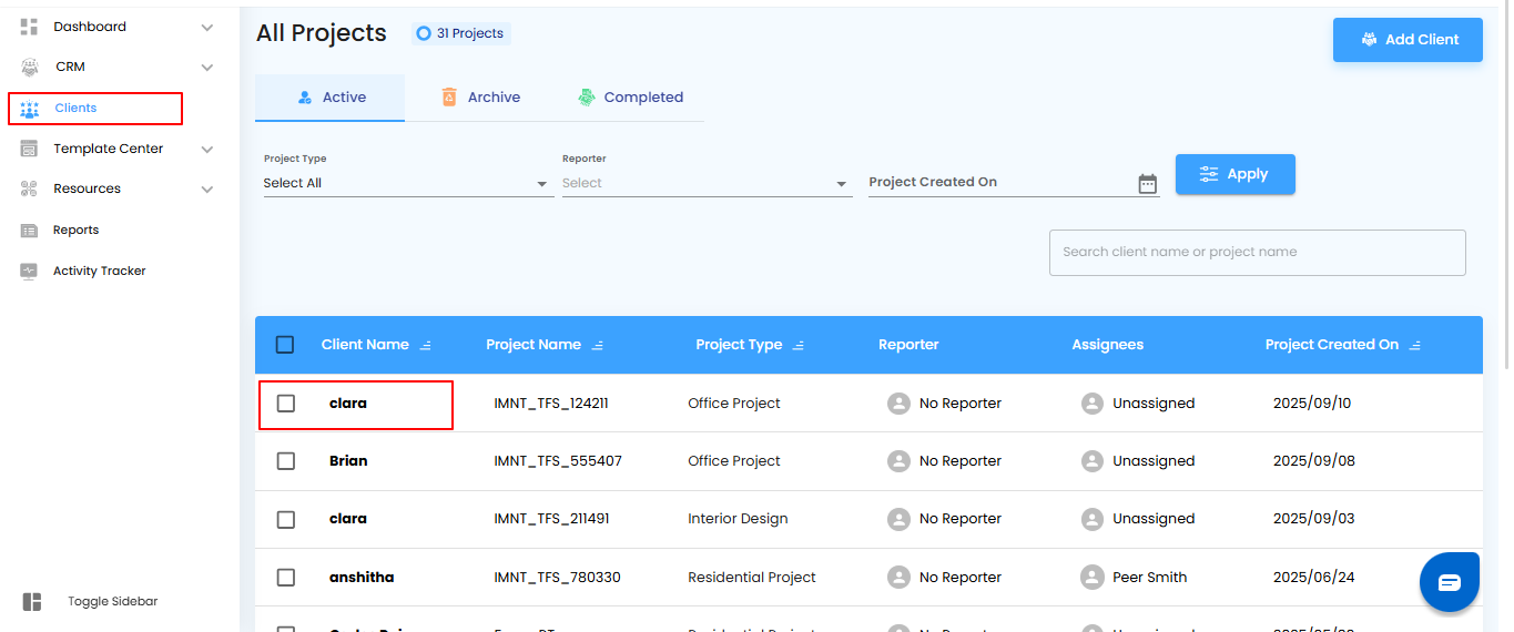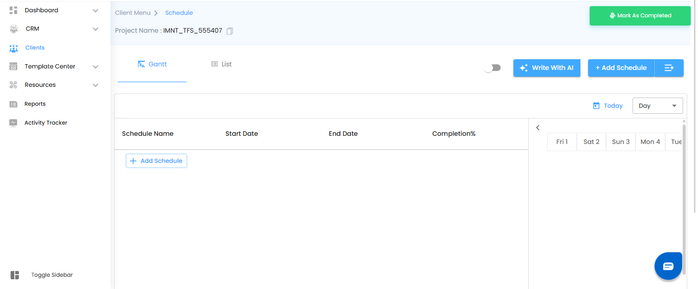- Choose a Client – Select the specific client whose project schedule you want to manage.