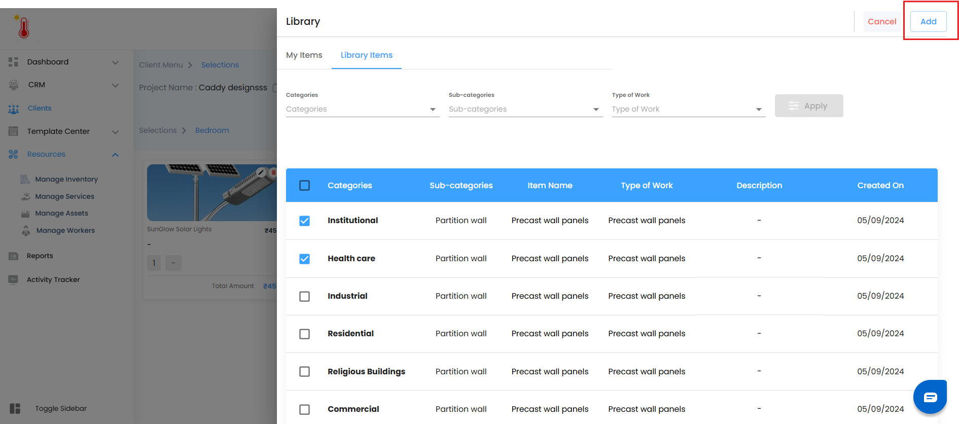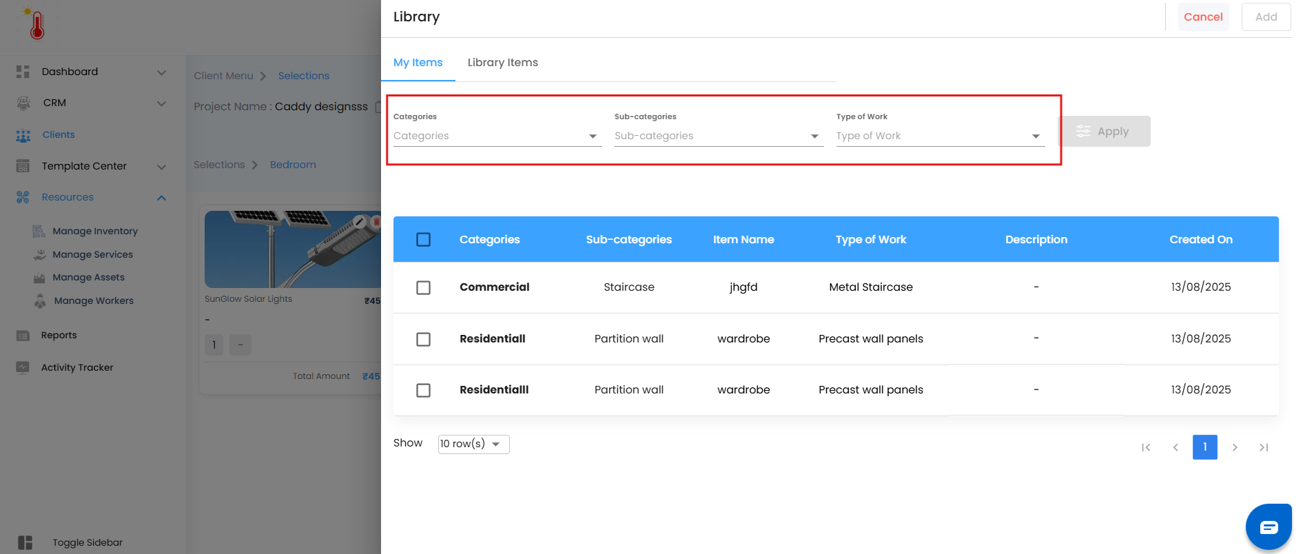 Instantly, a Library Off-Canvas Page opens — your central hub for structured BOQ data.