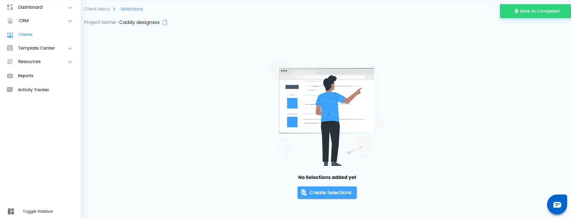 If it’s your first time, you’ll see a “No Selections Added Yet” vector illustration (your blank canvas.