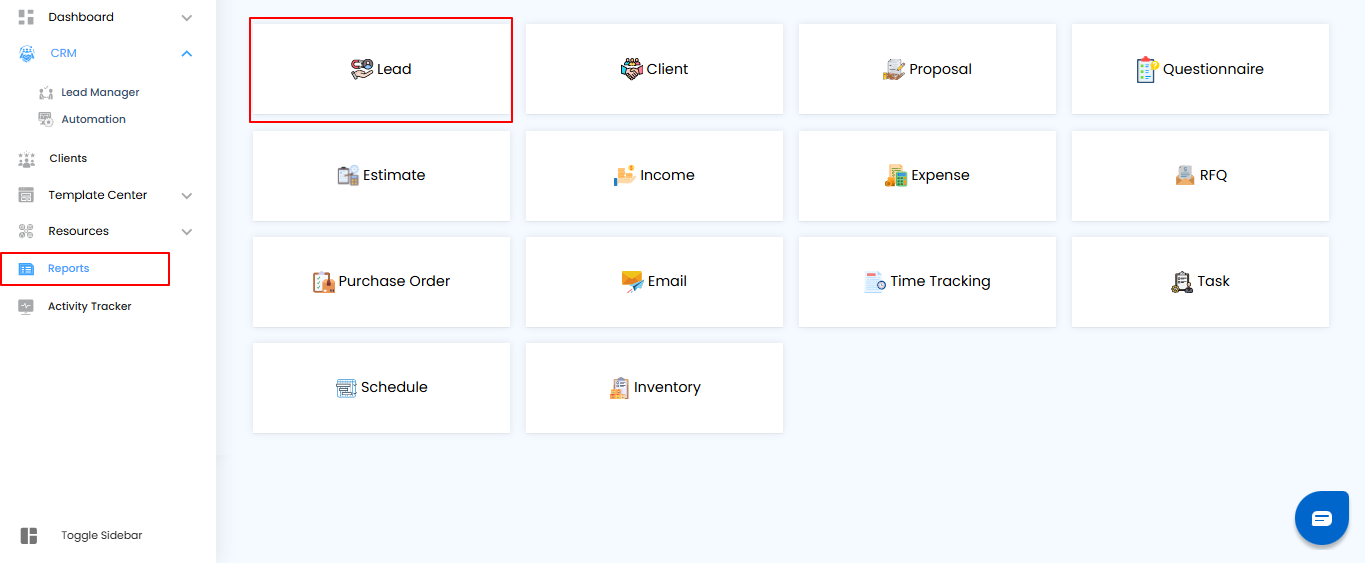 - Open the Leads Report – From the sidebar, click Leads to view the report.