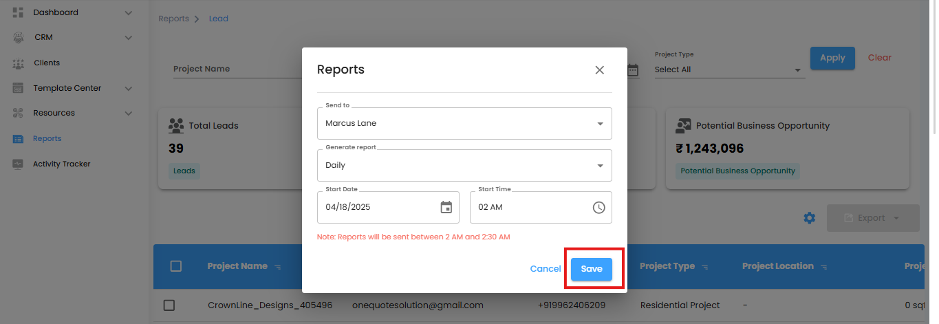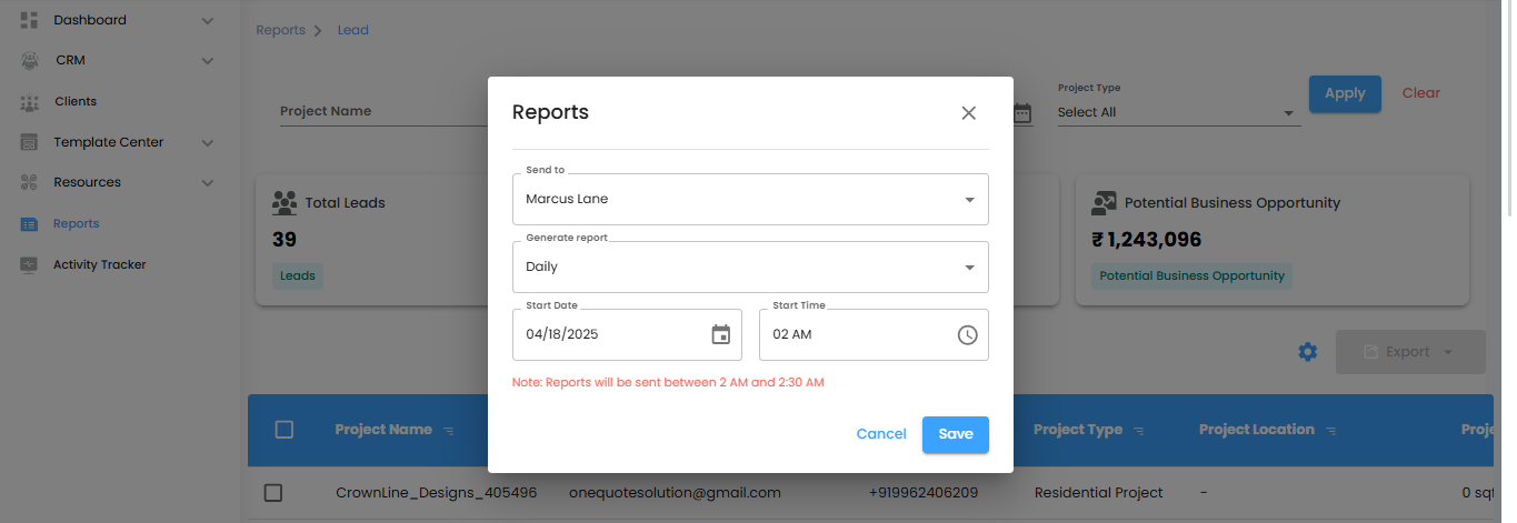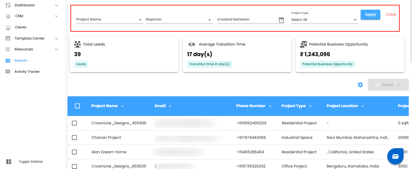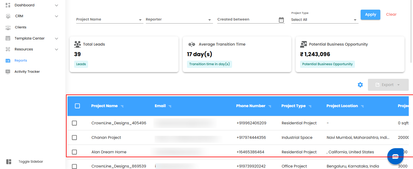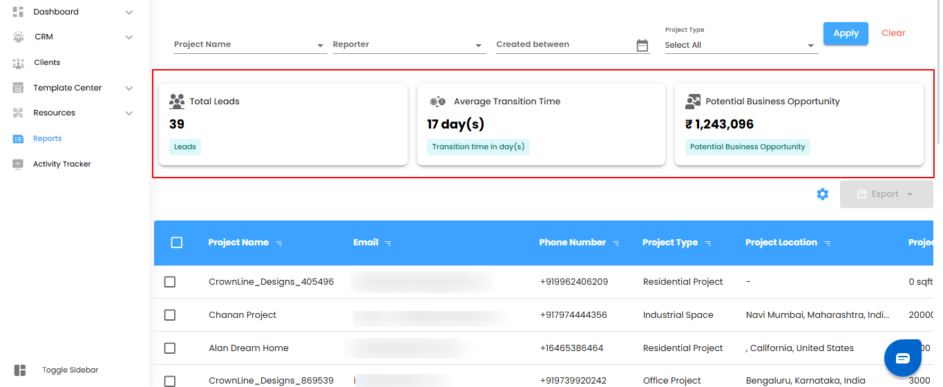 The Leads Report helps you manage and analyze project leads efficiently, giving you the insights needed to make informed business decisions.