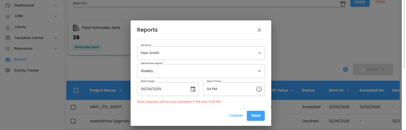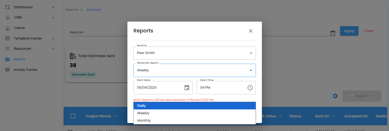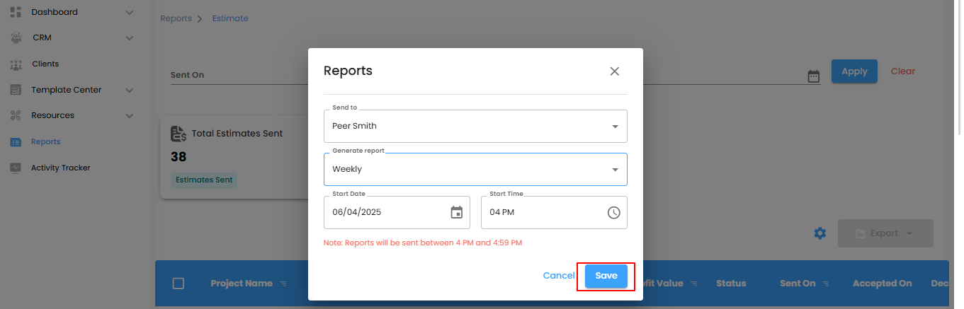 Pro tip: Treat this popup like your report command center—everything you need to schedule and manage your automated estimates lives here.