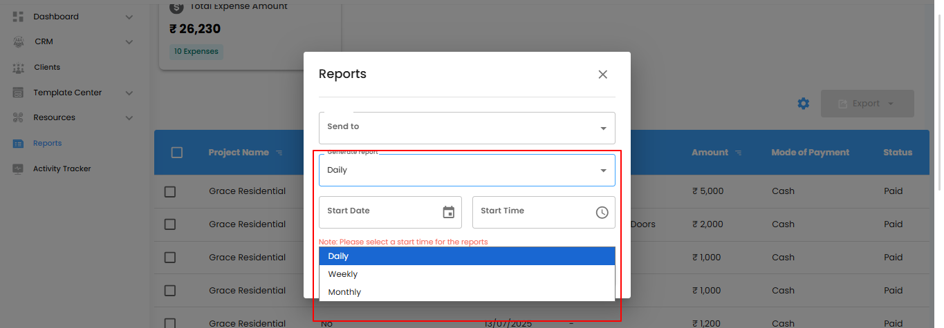 Think of this as directing your project’s expense updates straight to the inboxes that matter. Use the Send To dropdown to select the users who should receive your automated expense reports