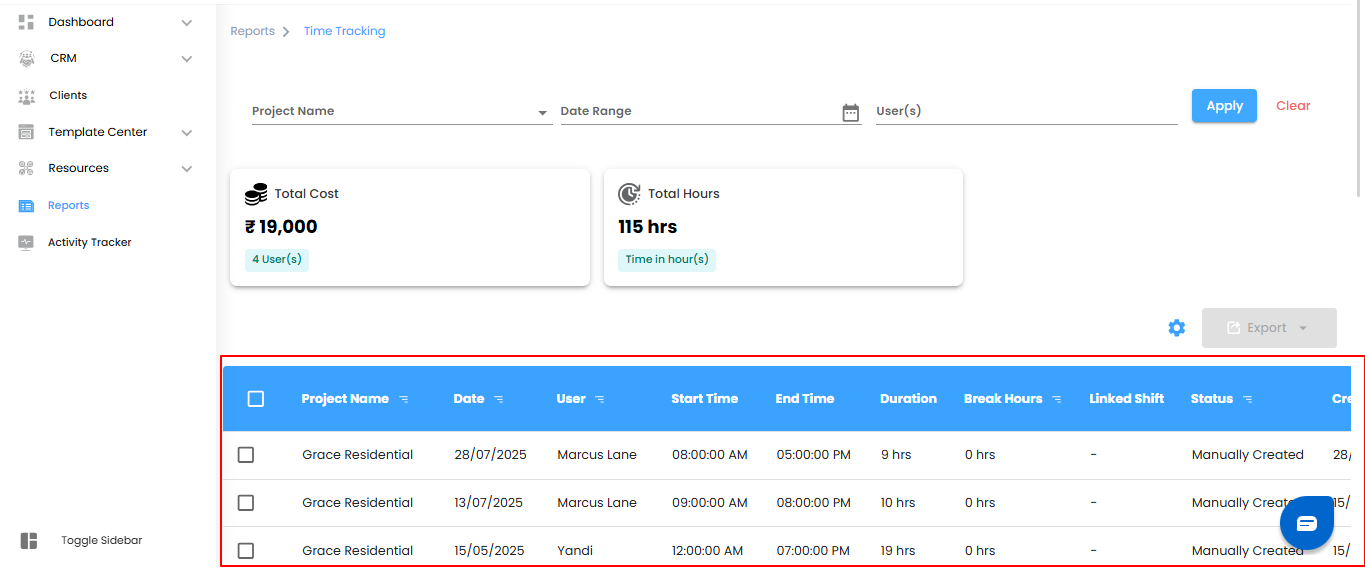 Pro Tip: Regularly review and export time tracking reports to spot trends, optimize resources, and ensure accurate project reporting.