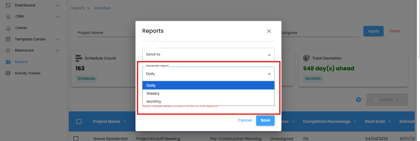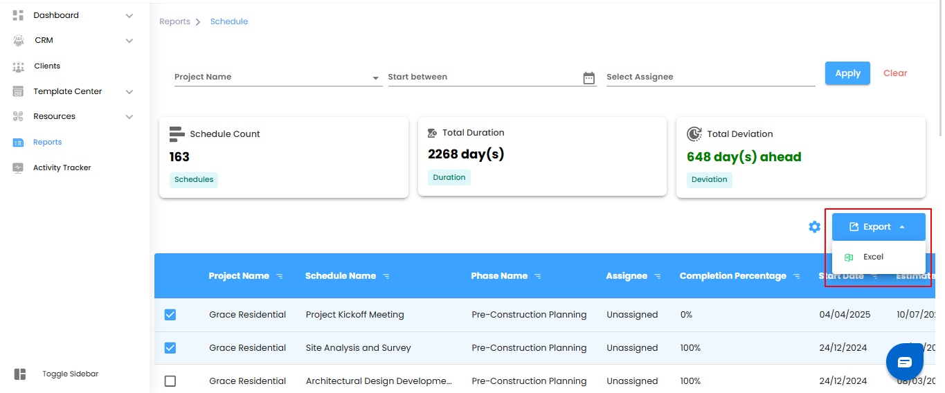 Pro Tip: Use Schedule Reports regularly to keep projects on track and prevent timeline delays.