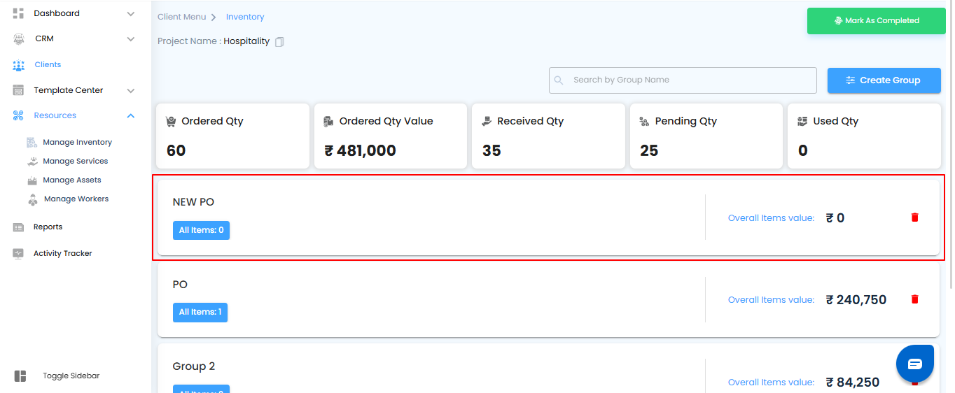 - Add items directly from a Purchase Order into your groups.